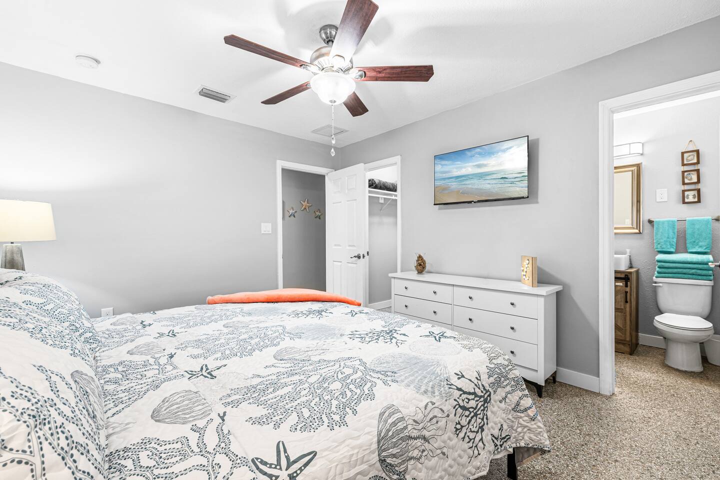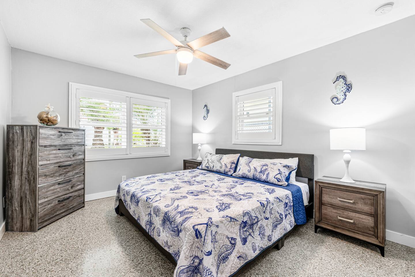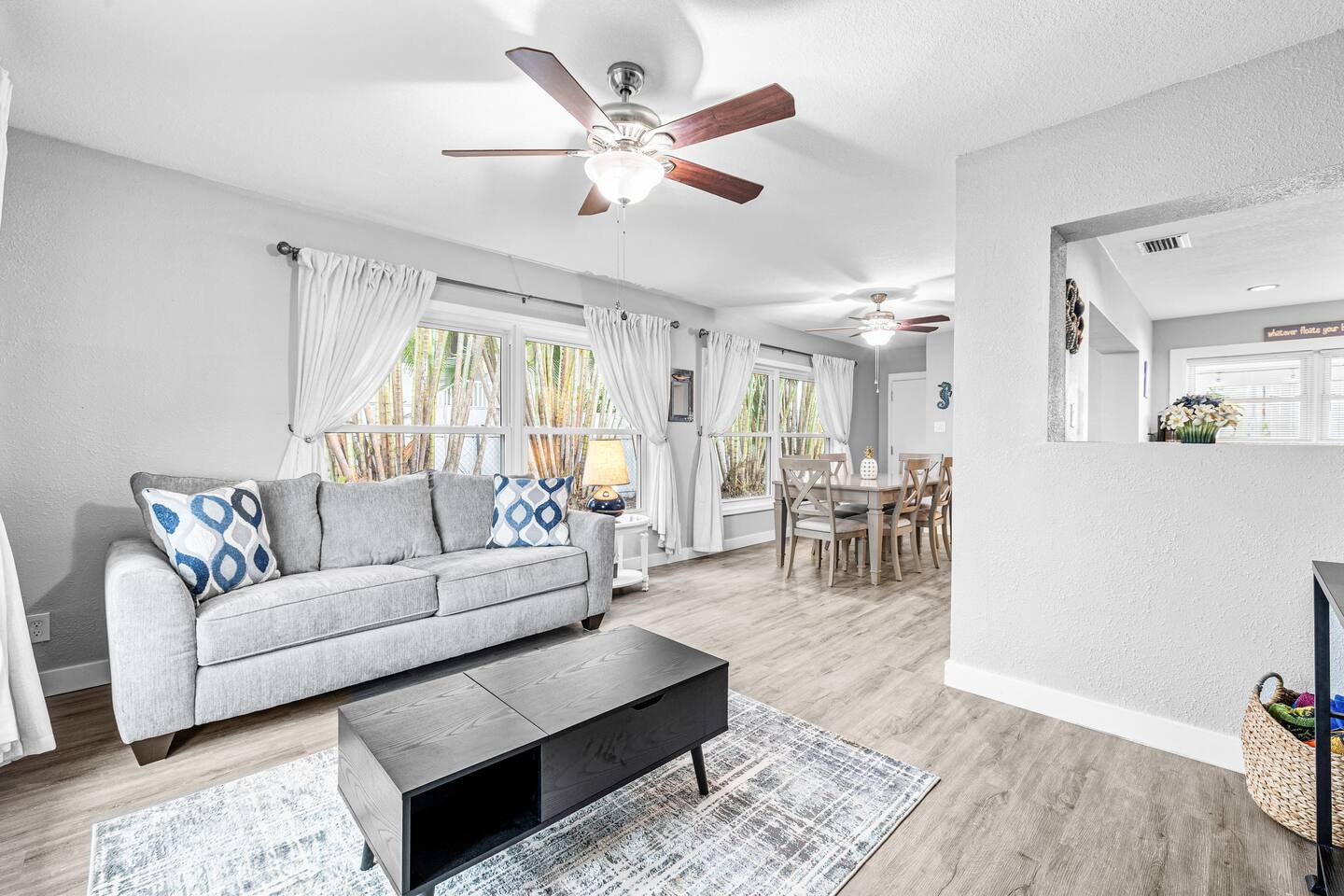 This charming retreat offers the perfect blend of relaxation and adventure. Located just steps from the pristine white sands and sparkling waters of the Gulf of Mexico, this home is ideal for families, couples, or friends looking for a sunny getaway! Inside, you'll find a beautifully decorated and spacious home with amenities like a fully-stocked kitchen, WiFi, and a smart TV! Nearby, you'll find John's Pass Village, a vibrant hub of local shops, restaurants, and water sports activities!