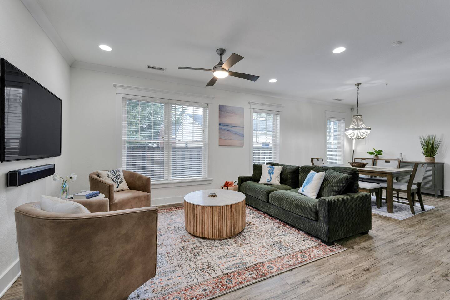 This townhome is the perfect getaway for whatever kind of adventure you're looking to have! Nestled in a vibrant neighborhood in Virginia Beach, this home offers lots of space, fresh & modern decor, and easy access to both the excitement of the city and the ocean waves. Property Highlights: - Accommodations for up to 8 guests, featuring 1 king bed, 3 queens, and 1 pullout couch (we also have a pack n play and highchair for families traveling with littles! Everyone is welcome!) - Fully Stocked Home: Equipped with everything you need for a comfortable trip, including fresh linens, towels, and toiletries; a fully equipped kitchen with cookware, dishes, and essentials; high-speed Wi-Fi and Smart TVs for streaming your favorite shows; and a washer & dryer for added convenience Prime Location: Situated in the ViBe District, you’ll be close to the best spots in the area, including: - The Virginia Beach Boardwalk: You're only a half mile from having your toes in the sand! - The Dome: You're right down the street from Virginia Beach's best music hall - Atlantic Park Surf: Less than a mile from the area's newest surf park
