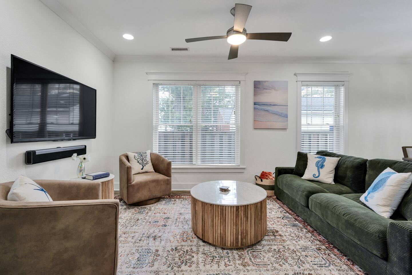 Welcome to our stylish 4 bedroom, 2.5 bath home in Virginia Beach. Featuring a spacious master suite with an attached bath and 3 other bedrooms with queen beds (plus a pullout sofa and a pack n play to make everyone comfortable!), it’s ideal for families and friends traveling together. Enjoy a fully stocked kitchen, Wi-Fi, Smart TV, and laundry. Located in the heart of the ViBe District, you’ll have easy access to all the local hotspots. Great for extended stays!
