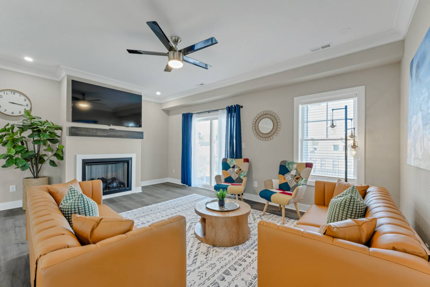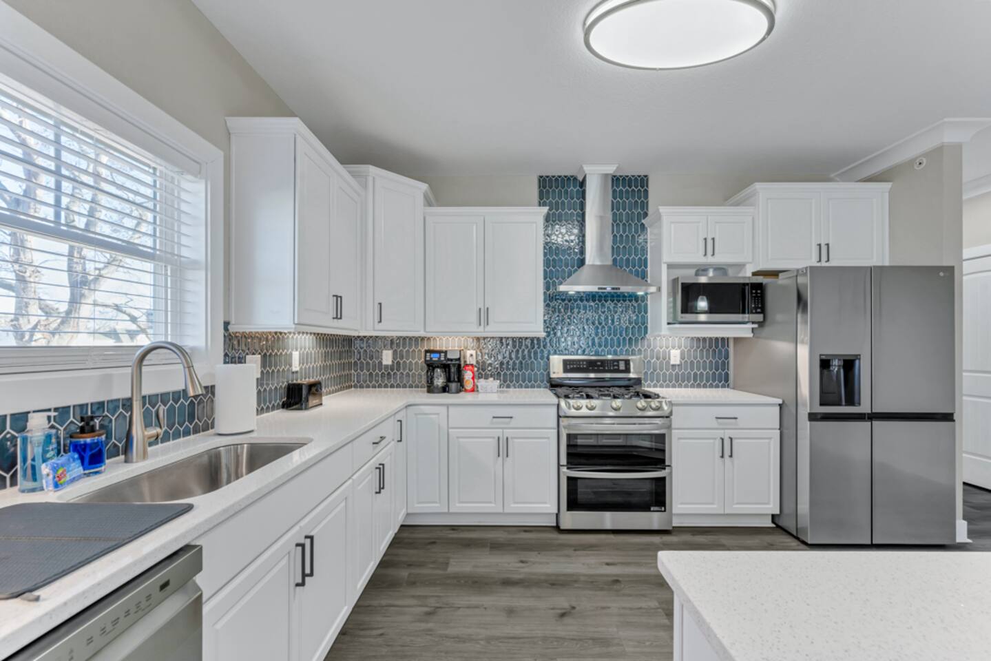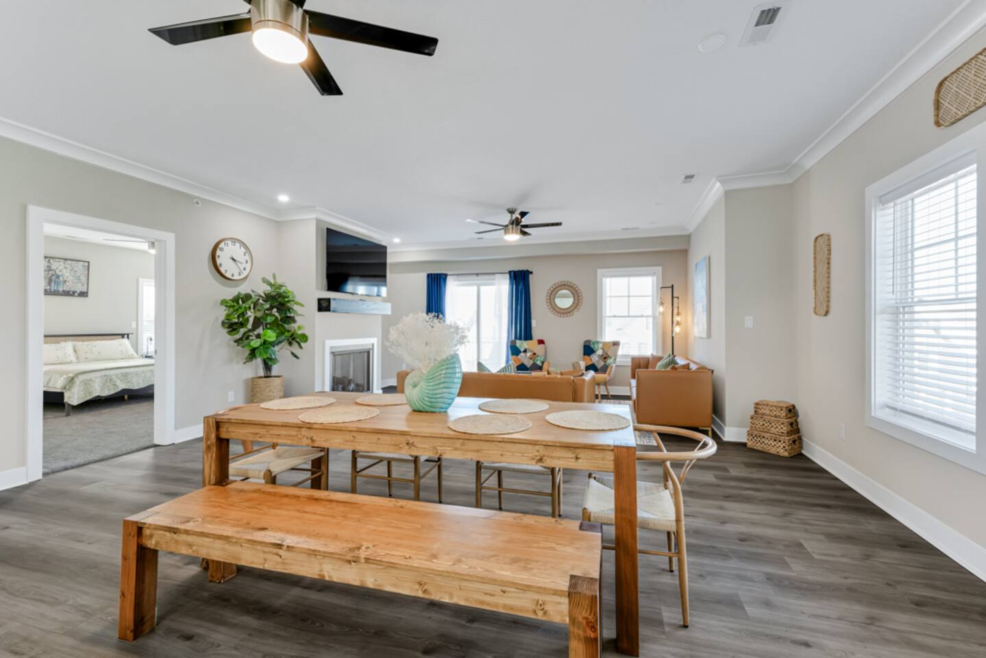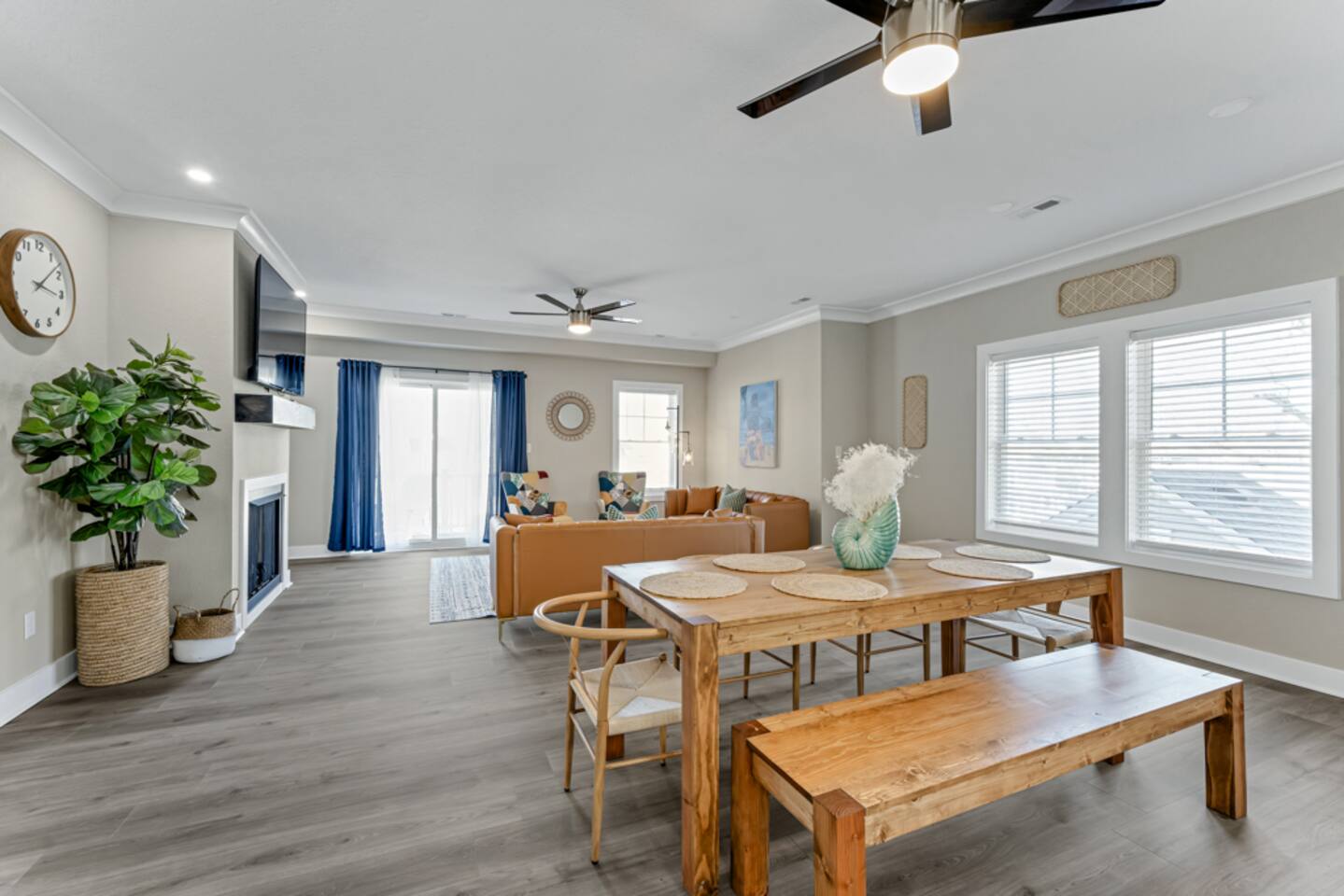 Welcome to this 3rd-floor condo in Virginia Beach’s trendy Vibe District. Perfect for families or couples, it features modern updates, stylish décor, and comfortable living spaces. Enjoy a fully equipped kitchen, high-speed Wi-Fi, Smart TV, in-unit laundry, and elevator access. Minutes from the oceanfront, dining, shops, and I-264, this condo is ideal for short or extended stays. You’ll enjoy: • Accommodations for up to 8 guests: 1 King, 3 Queens, 1 Full, 1 Twin • Fully stocked kitchen with cookware, dishes, and essentials • High-speed Wi-Fi and Smart TVs in every room • In-unit washer and dryer for convenience • Elevator access for easy floor navigation • Stylish modern décor throughout Location Highlights: • Heart of the Vibe District, close to Virginia Beach Convention Center, Grommet Island Park, and top restaurants • Less than 1 mile to Atlantic Park Surf and The Dome music venue Security & Safety: • Exterior motion-activated cameras record video/audio • Interior decibel monitoring device measures noise levels to prevent parties (does not record conversations) Pet Policy: • Small house-trained dogs over 1 year old allowed with pre-approval • Pet fee: $100 per 10 nights • No cats allowed • Dogs must be crated when left unattended • Dogs must be supervised in the backyard • $75 pet waste fee applies if not cleaned up • Pre-approval required or a fine of double the pet fee per night House Rules: • No smoking (weed or cigarettes). Evidence incurs a $500 fine. • Guests must be listed; undisclosed visitors incur $50 per night • Quiet hours: 9 p.m.–8 a.m. • Maximum occupancy: 8 guests. No parties allowed; $500 minimum fine • Service animals allowed; those with severe allergies should consider suitability • $75 per hour late checkout fee applies if not arranged • Clean grills after use to avoid $75 cleaning fee • Ice makers are extra amenities; no refunds if non-functional • Utilities must be used responsibly; excess usage charged to guest • No paper towels or wipes in drains; damages billed to guest • Third-party ID verification required; reservation may be canceled if not completed • Cleaning or maintenance issues must be reported to host • Lawn care and trash may occur during stay; days vary • Stays over 60 days require cleaning every 30 days • 30+ day bookings require application, screening, signed lease, and deposit through Sojourn Realty • No shoveling or snow removal provided; use caution