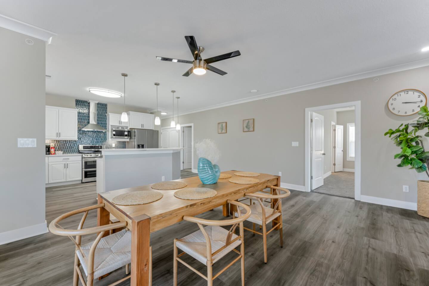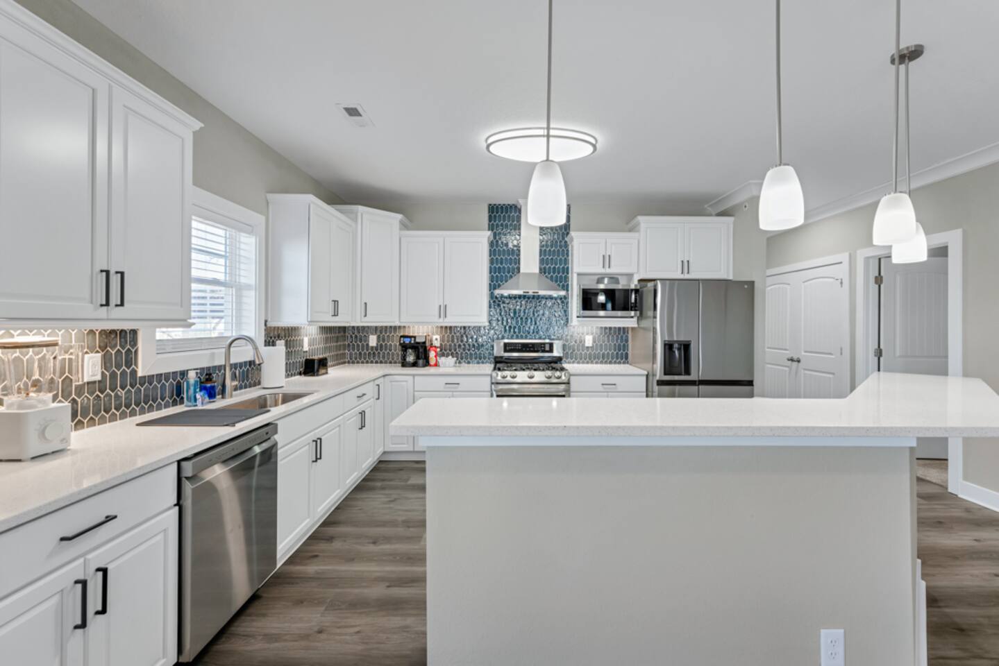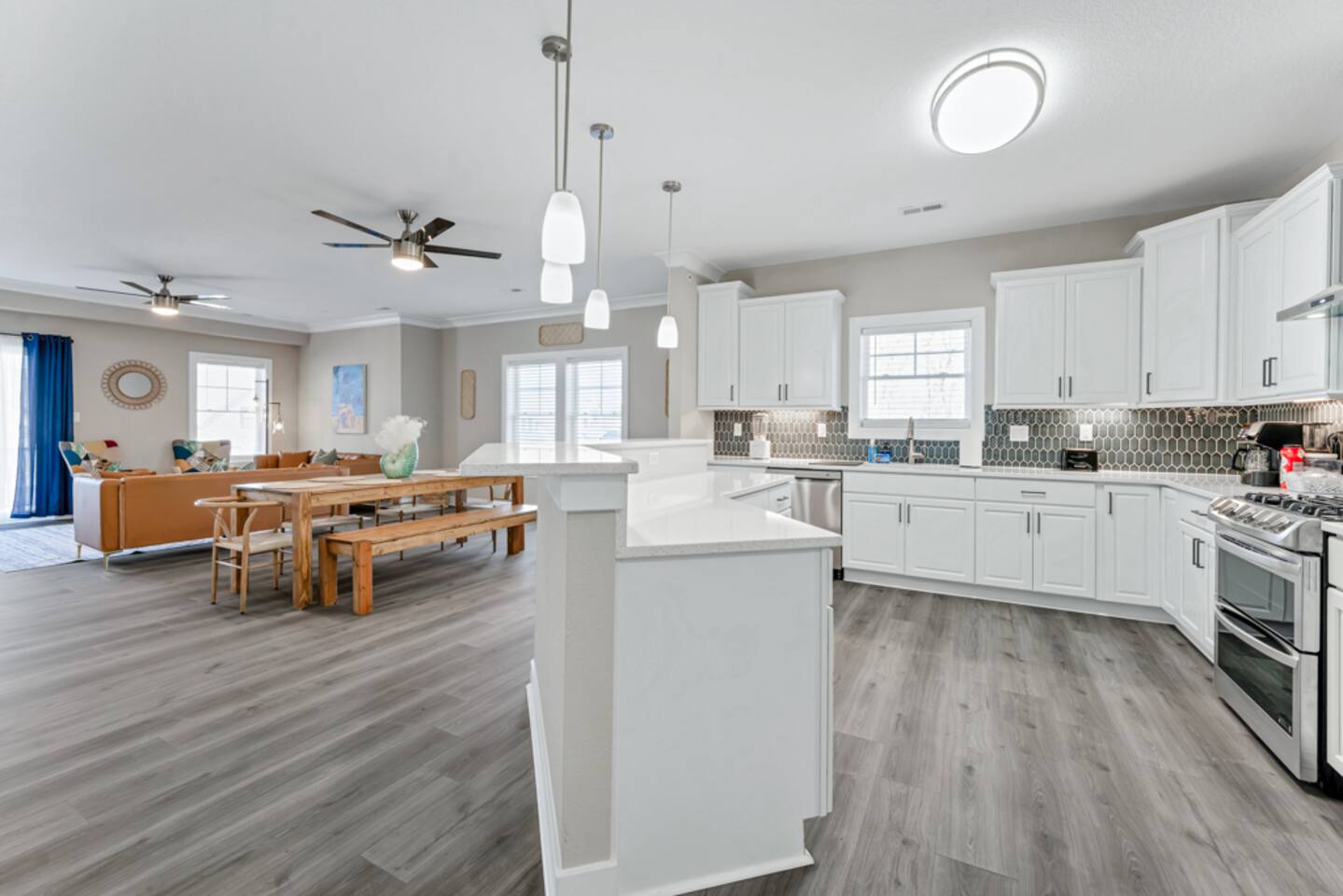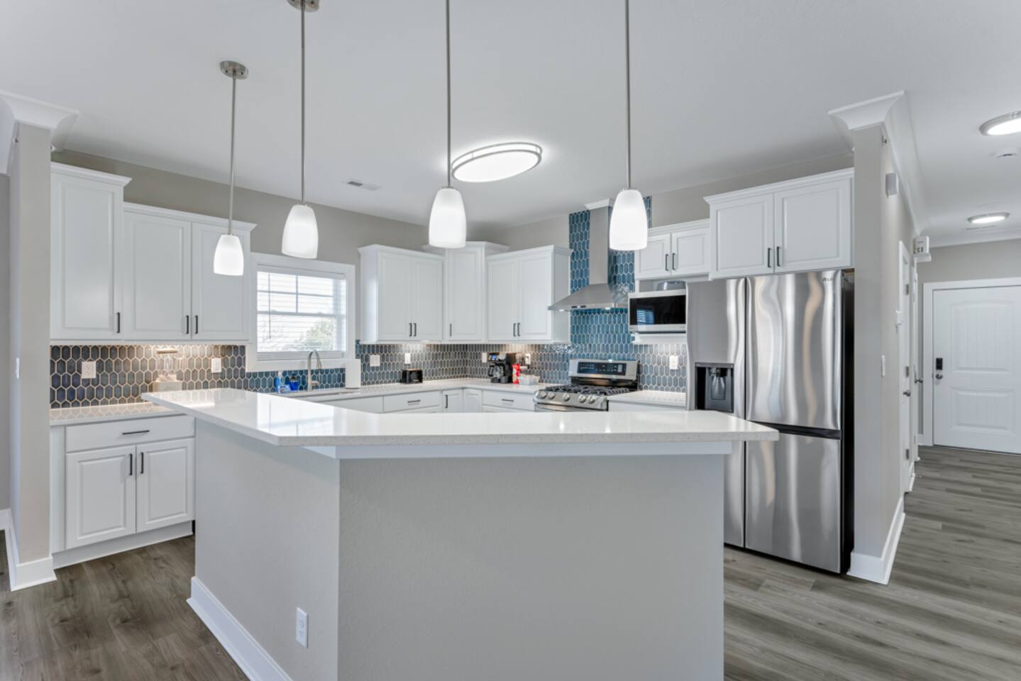 Welcome to this 3rd-floor condo in Virginia Beach’s trendy Vibe District. Perfect for families or couples, it features modern updates, stylish décor, and comfortable living spaces. Enjoy a fully equipped kitchen, high-speed Wi-Fi, Smart TV, in-unit laundry, and elevator access. Minutes from the oceanfront, dining, shops, and I-264, this condo is ideal for short or extended stays. You’ll enjoy: • Accommodations for up to 8 guests: 1 King, 3 Queens, 1 Full, 1 Twin • Fully stocked kitchen with cookware, dishes, and essentials • High-speed Wi-Fi and Smart TVs in every room • In-unit washer and dryer for convenience • Elevator access for easy floor navigation • Stylish modern décor throughout Location Highlights: • Heart of the Vibe District, close to Virginia Beach Convention Center, Grommet Island Park, and top restaurants • Less than 1 mile to Atlantic Park Surf and The Dome music venue Security & Safety: • Exterior motion-activated cameras record video/audio • Interior decibel monitoring device measures noise levels to prevent parties (does not record conversations) Pet Policy: • Small house-trained dogs over 1 year old allowed with pre-approval • Pet fee: $100 per 10 nights • No cats allowed • Dogs must be crated when left unattended • Dogs must be supervised in the backyard • $75 pet waste fee applies if not cleaned up • Pre-approval required or a fine of double the pet fee per night House Rules: • No smoking (weed or cigarettes). Evidence incurs a $500 fine. • Guests must be listed; undisclosed visitors incur $50 per night • Quiet hours: 9 p.m.–8 a.m. • Maximum occupancy: 8 guests. No parties allowed; $500 minimum fine • Service animals allowed; those with severe allergies should consider suitability • $75 per hour late checkout fee applies if not arranged • Clean grills after use to avoid $75 cleaning fee • Ice makers are extra amenities; no refunds if non-functional • Utilities must be used responsibly; excess usage charged to guest • No paper towels or wipes in drains; damages billed to guest • Third-party ID verification required; reservation may be canceled if not completed • Cleaning or maintenance issues must be reported to host • Lawn care and trash may occur during stay; days vary • Stays over 60 days require cleaning every 30 days • 30+ day bookings require application, screening, signed lease, and deposit through Sojourn Realty • No shoveling or snow removal provided; use caution