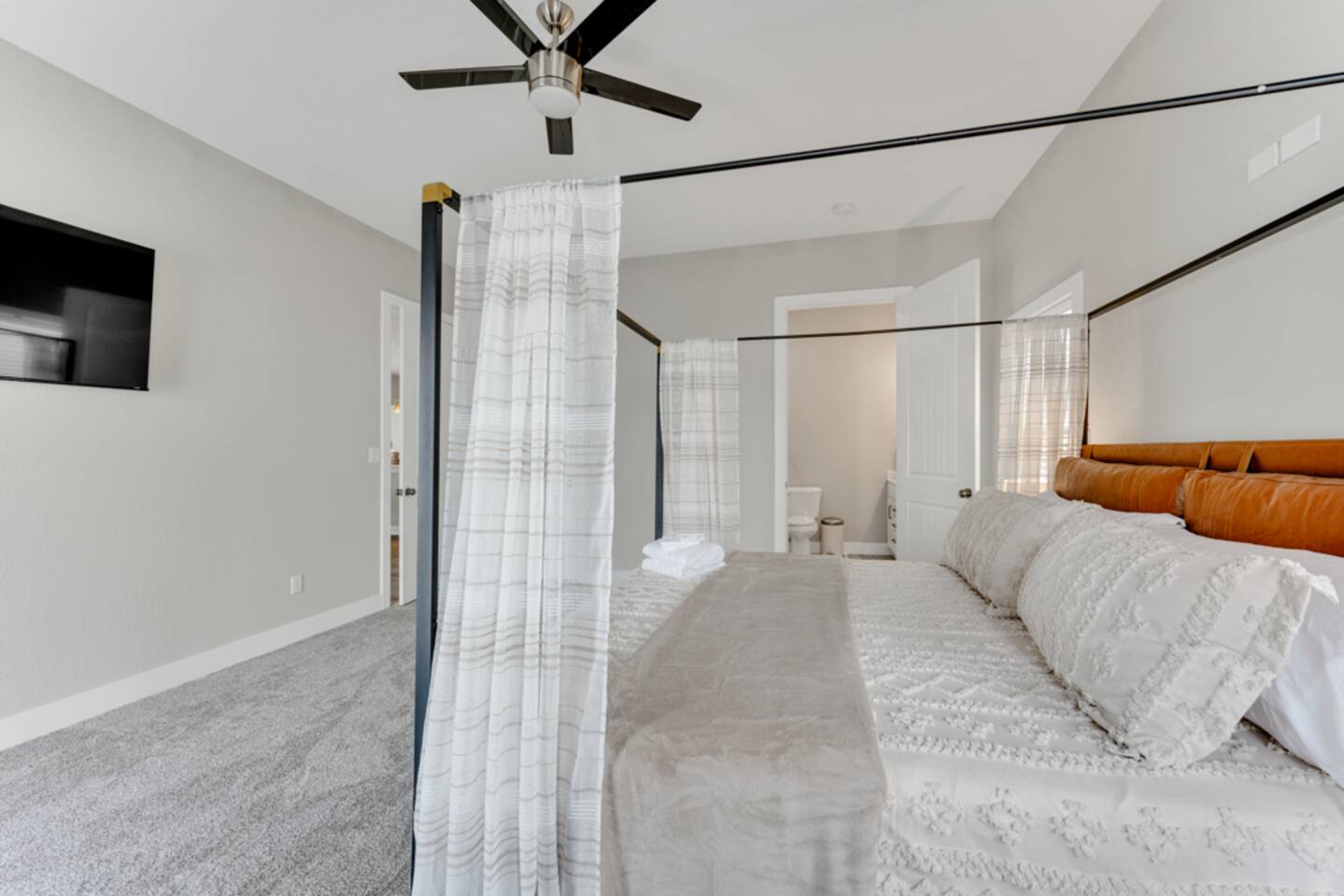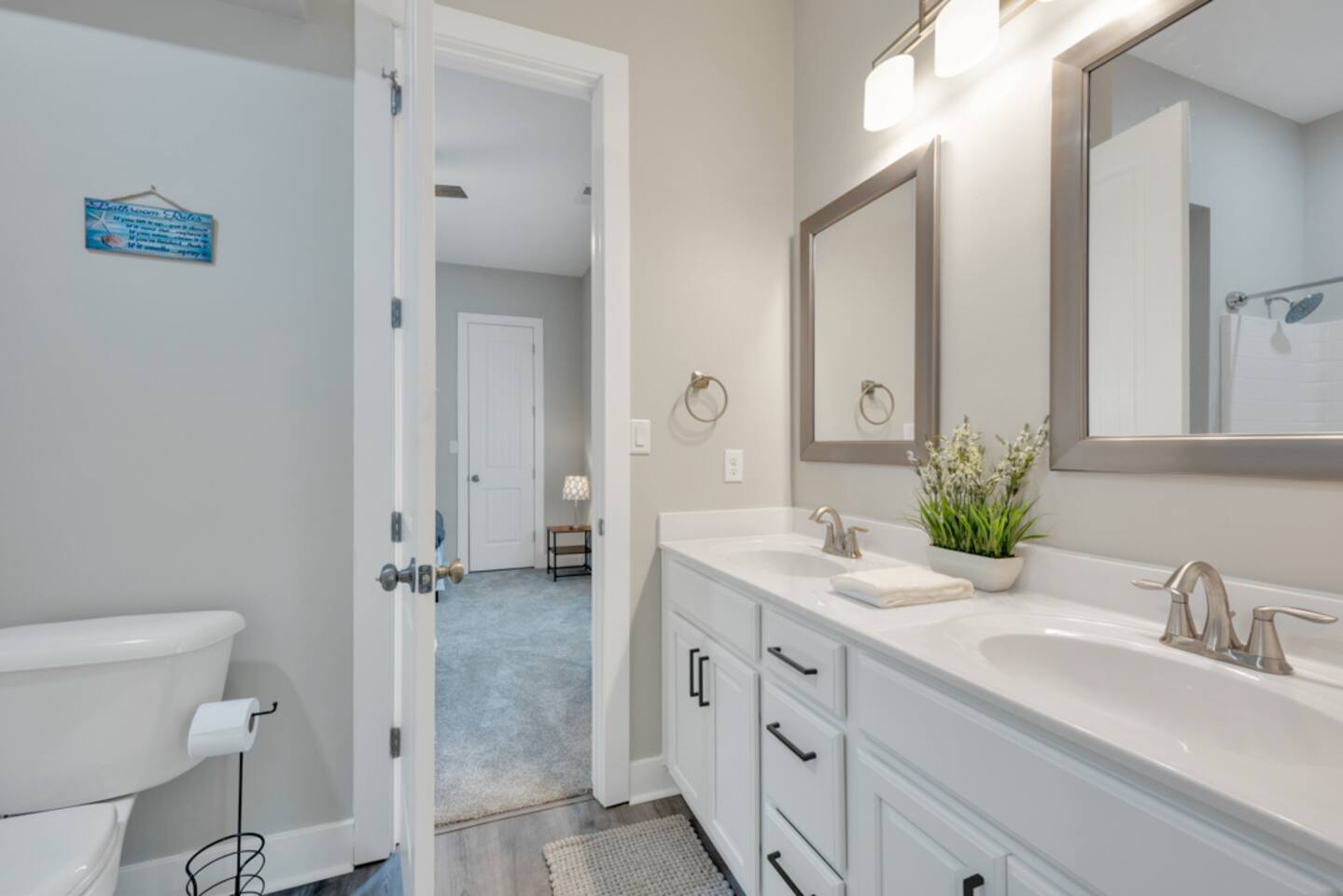 There are cameras on the exterior of the home and in the hallway. There are no cameras inside the units. They are motion activated, record video and audio, and are active during reservations. There is also a decibel monitoring device located in the home. This is a smart device that measures decibel levels only and allows us to respond to extremely loud and sustained volumes. It does NOT record conversation, it only measures decibel levels. This helps us to avoid unauthorized parties. Our goal is for our guests and neighbors to both have an enjoyable experience!