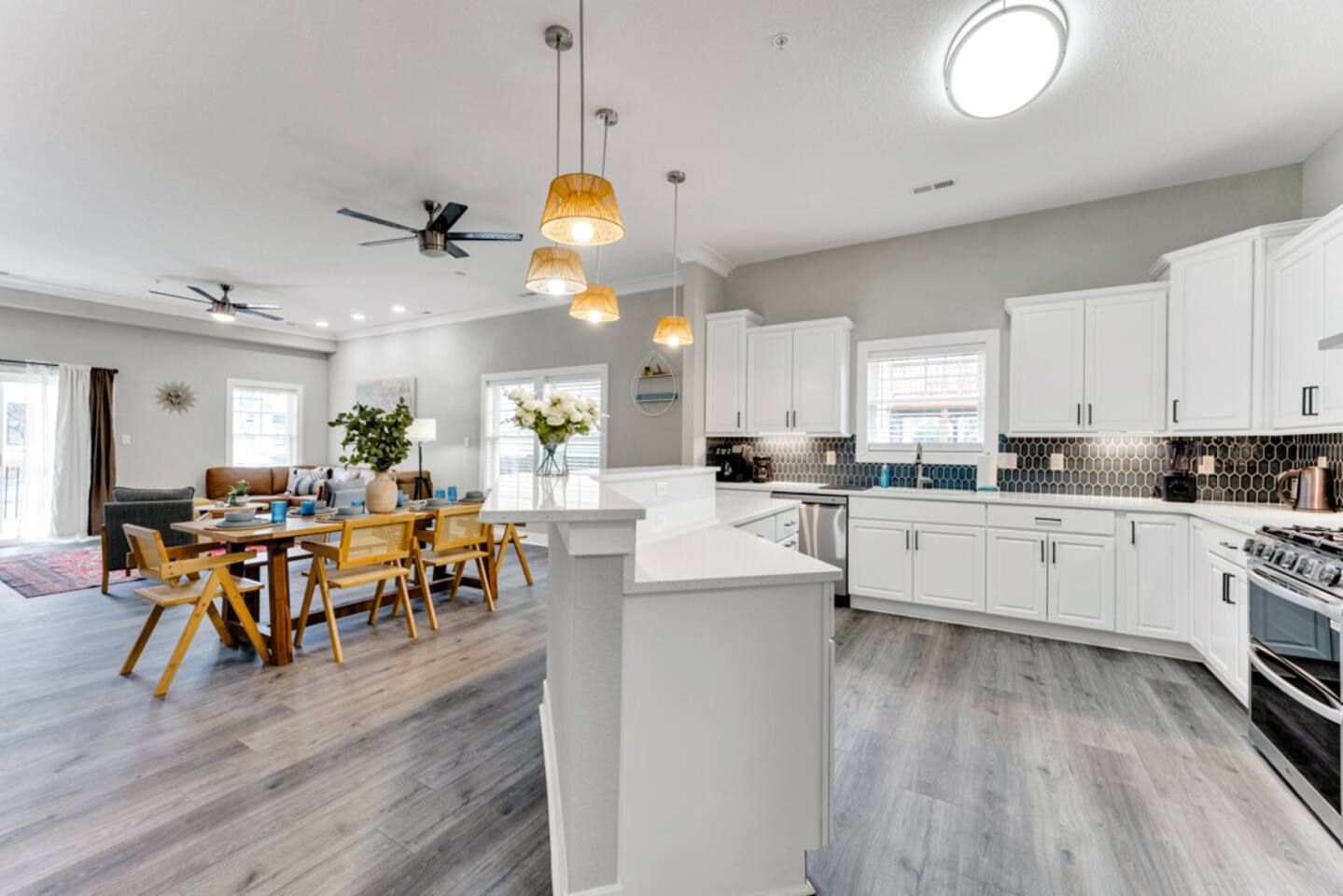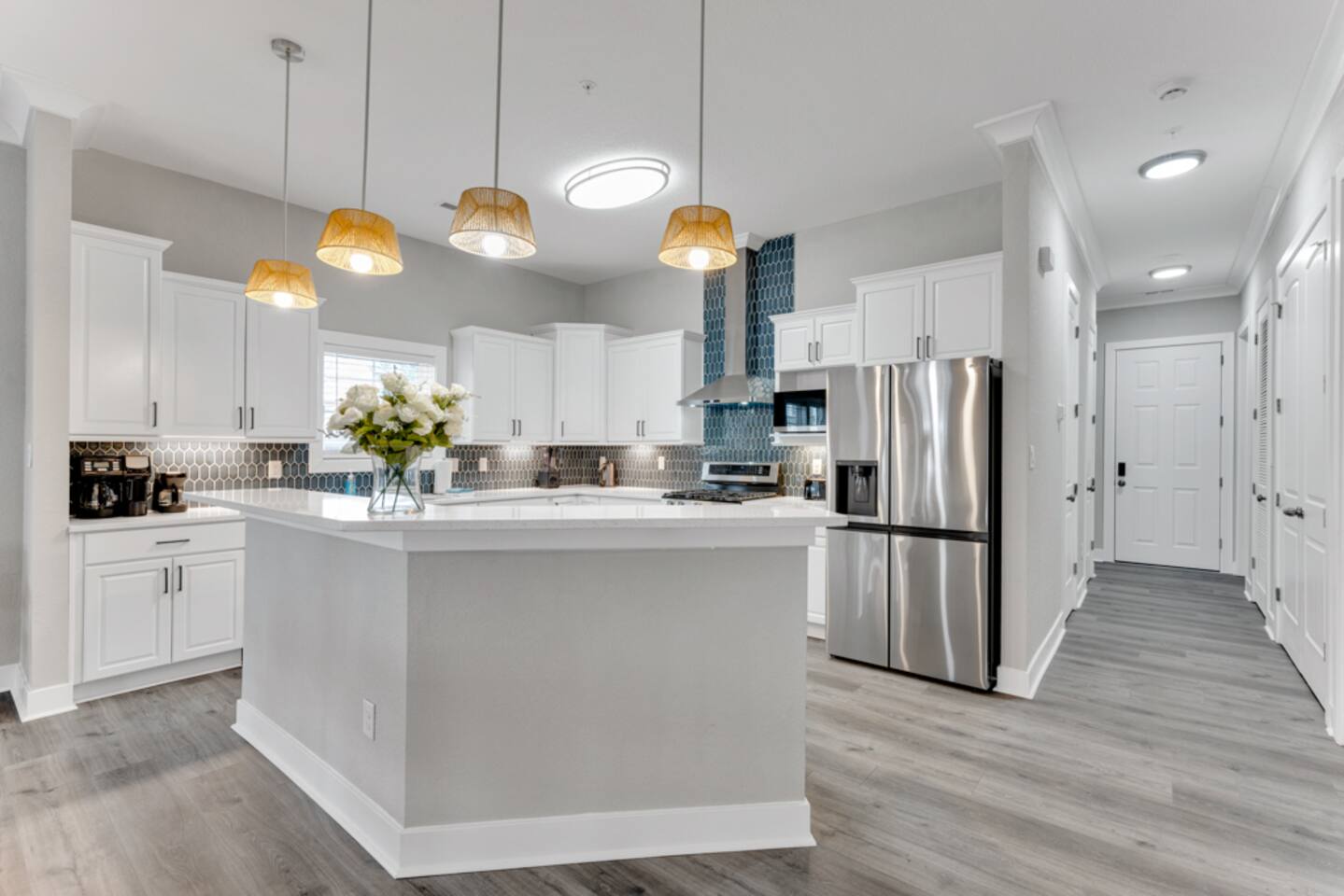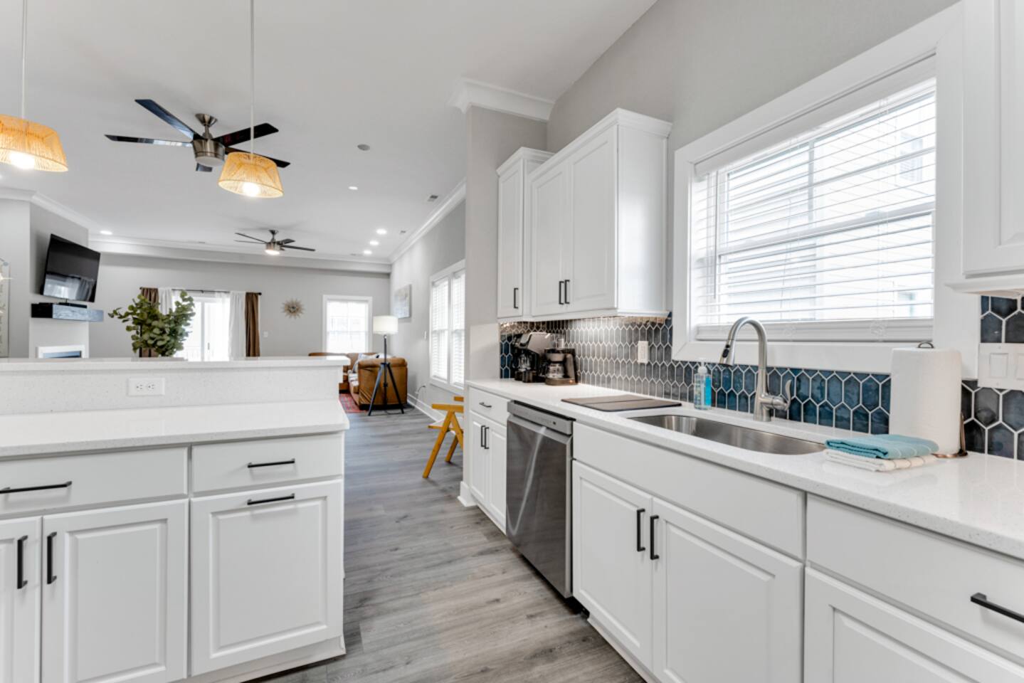 Spacious 4BR, 2.5BA condo in Virginia Beach’s trendy Vibe District. Comfortably sleeps 8 with 1 king, 2 queens, 1 full, and 1 twin. Enjoy a fully stocked kitchen, Smart TVs, high-speed Wi-Fi, and in-unit laundry. Just a short walk to the oceanfront, boardwalk, local dining, and shops. Pet-friendly with pre-approval. Perfect for families, groups, or extended stays, this bright ground-floor condo offers the best mix of comfort, convenience, and coastal charm.