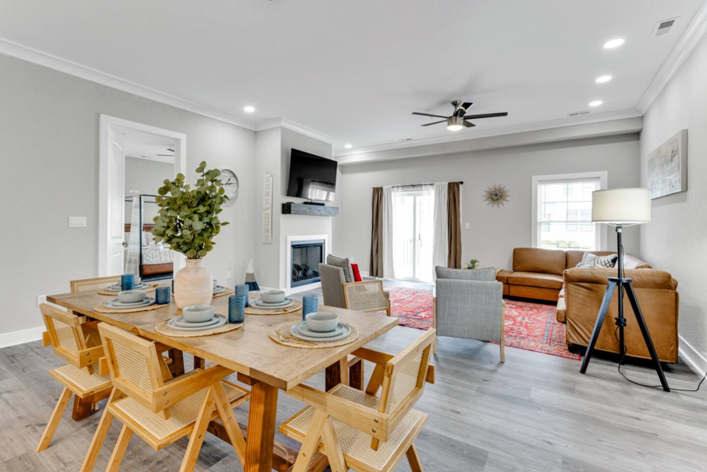 Steps from the oceanfront, this stylish 1st-floor condo in Virginia Beach’s Vibe District is perfect for families or couples. Featuring modern updates, chic décor, and comfortable living spaces, it offers a fully equipped kitchen, high-speed Wi-Fi, Smart TV, and in-unit laundry. Just minutes from local dining, shops, the boardwalk, and I-264, it’s ideal for short or extended stays. You’ll enjoy: • Accommodations for up to 8 guests with 1 king, 2 queens, 1 full, and 1 twin • Fully stocked kitchen with cookware, dishes, and essentials • High-speed Wi-Fi and Smart TVs in every room • In-unit washer and dryer for convenience • Stylish, modern décor throughout • Less than a 10-minute walk to the beach • Beach gear provided – chairs, cart, and more • Pet-friendly (pre-approval & fees apply) • Linens and towels included • In the heart of the VIBE District – walk to cafes, restaurants, and Convention Center • Less than 1 mile to Atlantic Park Surf AND The Dome music venue • Easy self check-in with smart lock House Rules: • No smoking (weed or cigarettes) – evidence incurs $500 minimum fine. Smoke away from windows/doors and dispose properly. • All visitors must be listed in the guest count. $50/night per undisclosed guest. Maximum occupancy strictly enforced. • Observe 9 p.m.–8 a.m. quiet hours. Noise violations receive one warning; further violations may result in removal without refund. • No parties – defined as more than 8 occupants at one time. $500 minimum fine. No refunds if reservation terminated for party. • Dogs allowed over 1 year old, pre-approved. Pet fee: $100 per 10 nights or $250/month. Dogs must be crated if unattended and supervised in backyard. $75 pet waste fee applies if not cleaned. Fine of double pet fee per night if not approved. No cats allowed. • Home is professionally cleaned between stays; air filters changed regularly. Guests with severe allergies should assess suitability. • No refunds for COVID-19 or weather-related cancellations, including hurricanes. Consider trip insurance. • $75/hour charge for late checkout without prior approval. • Clean grill after use to avoid $75 cleaning fee. • Ice makers and fireplaces are extra amenities; no refunds if not functioning. • Utilities (electricity, water, gas) must be used responsibly. Excess consumption fees apply. • No paper towels or wipes (including flushable) down drains; repair costs billed to guest. • Third-party encrypted ID verification required. Reservation may be canceled with full refund if not completed or failed. • Report cleaning or maintenance issues immediately. No refunds if issues unreported. • Lawn care and trash may occur during your stay; schedule varies. • Stays over 60 days require cleaning every 30 days (included in fee). • Stays 90+ days require application, screening, signed lease, $1,000 deposit. Bookings brokered by Sojourn Realty. • No snow removal or shoveling provided; use caution during winter conditions.