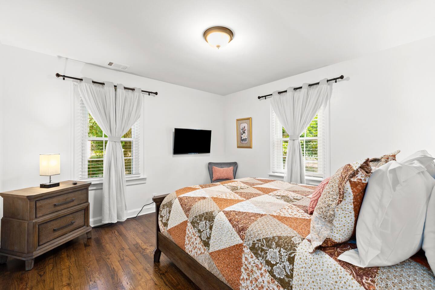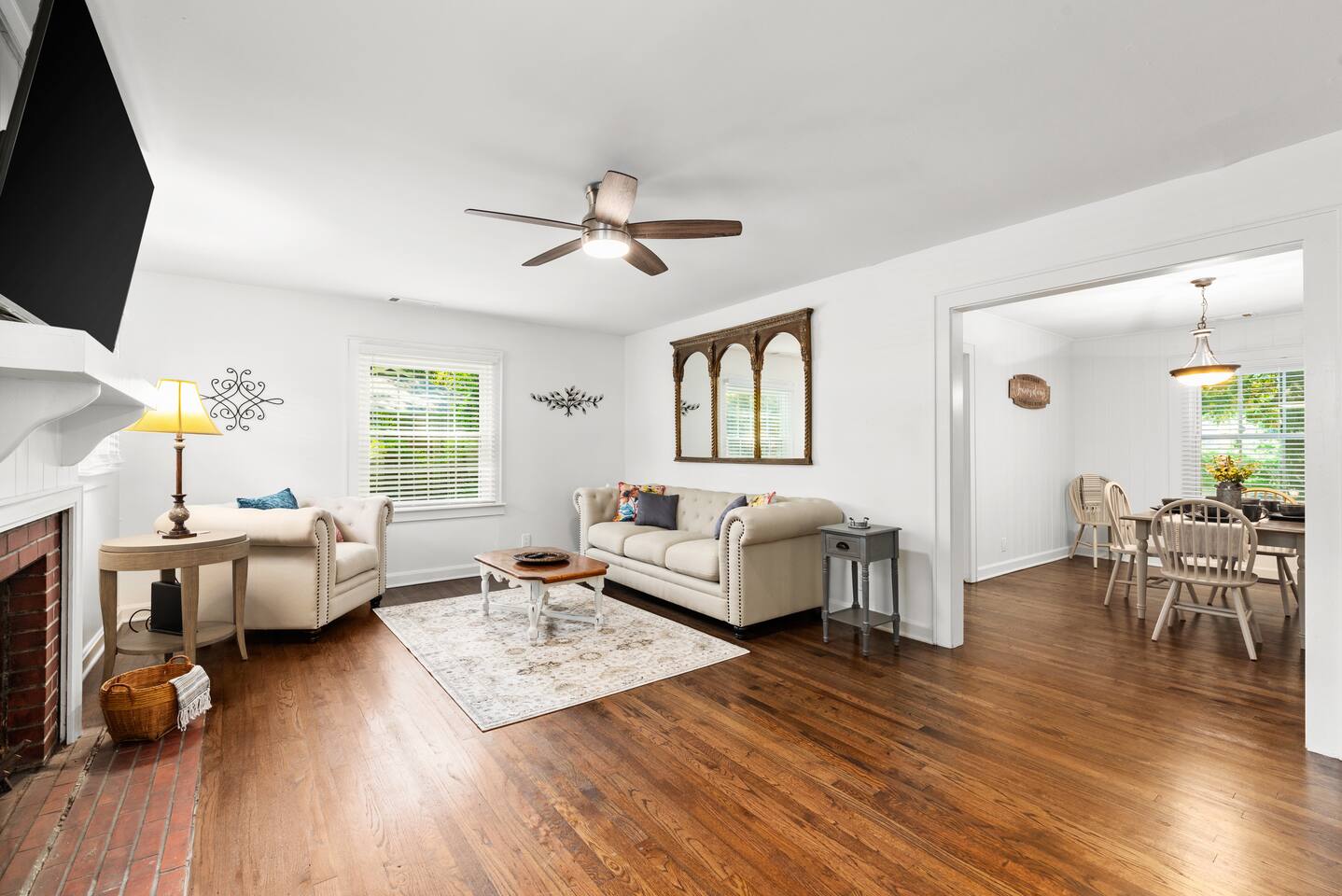 Discover the perfect blend of modern comfort and small-town charm at this bright 2-bedroom, 1-bath farmhouse-style home in Kennesaw. Featuring 2 cozy bedrooms with Smart TVs, it’s ideal for couples, solo travelers, or small families. Thoughtful amenities include a fully stocked kitchen, Wi-Fi, laundry, and a relaxing living space. Located right on Main Street, you’ll enjoy easy access to local hotspots! Whether for a weekend or extended stay, this home truly has it all!