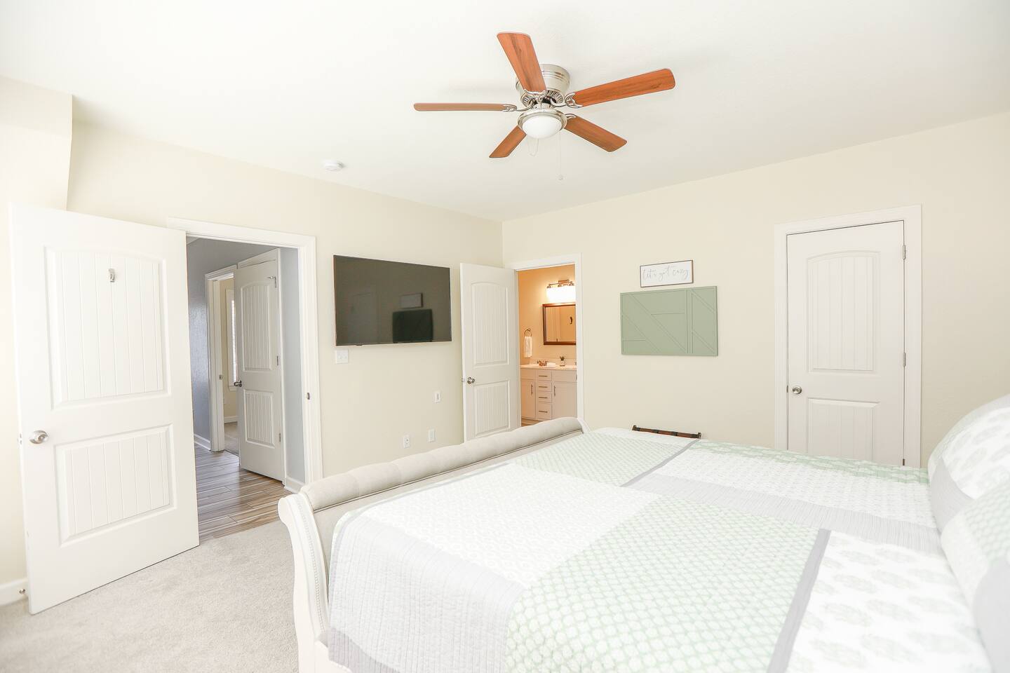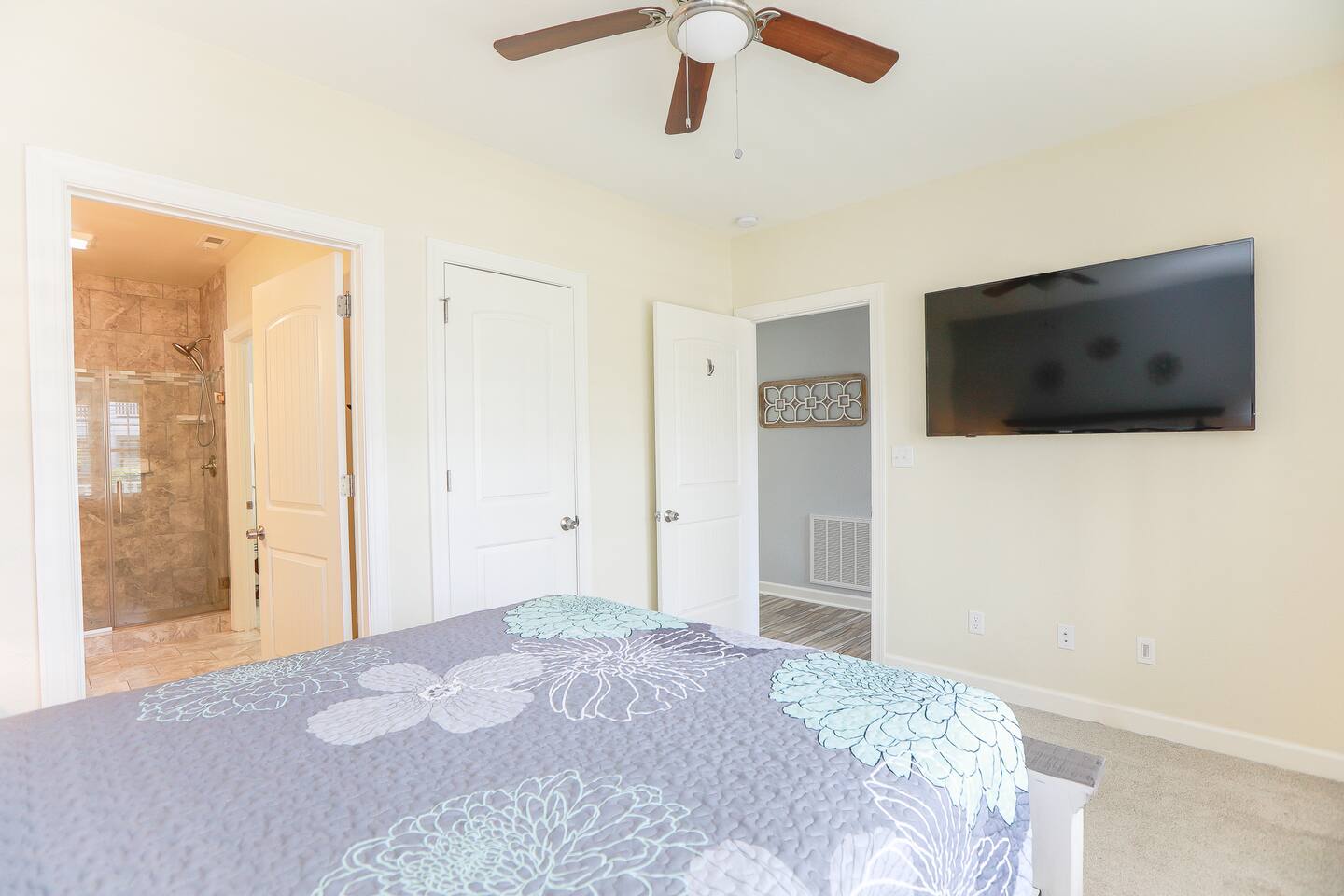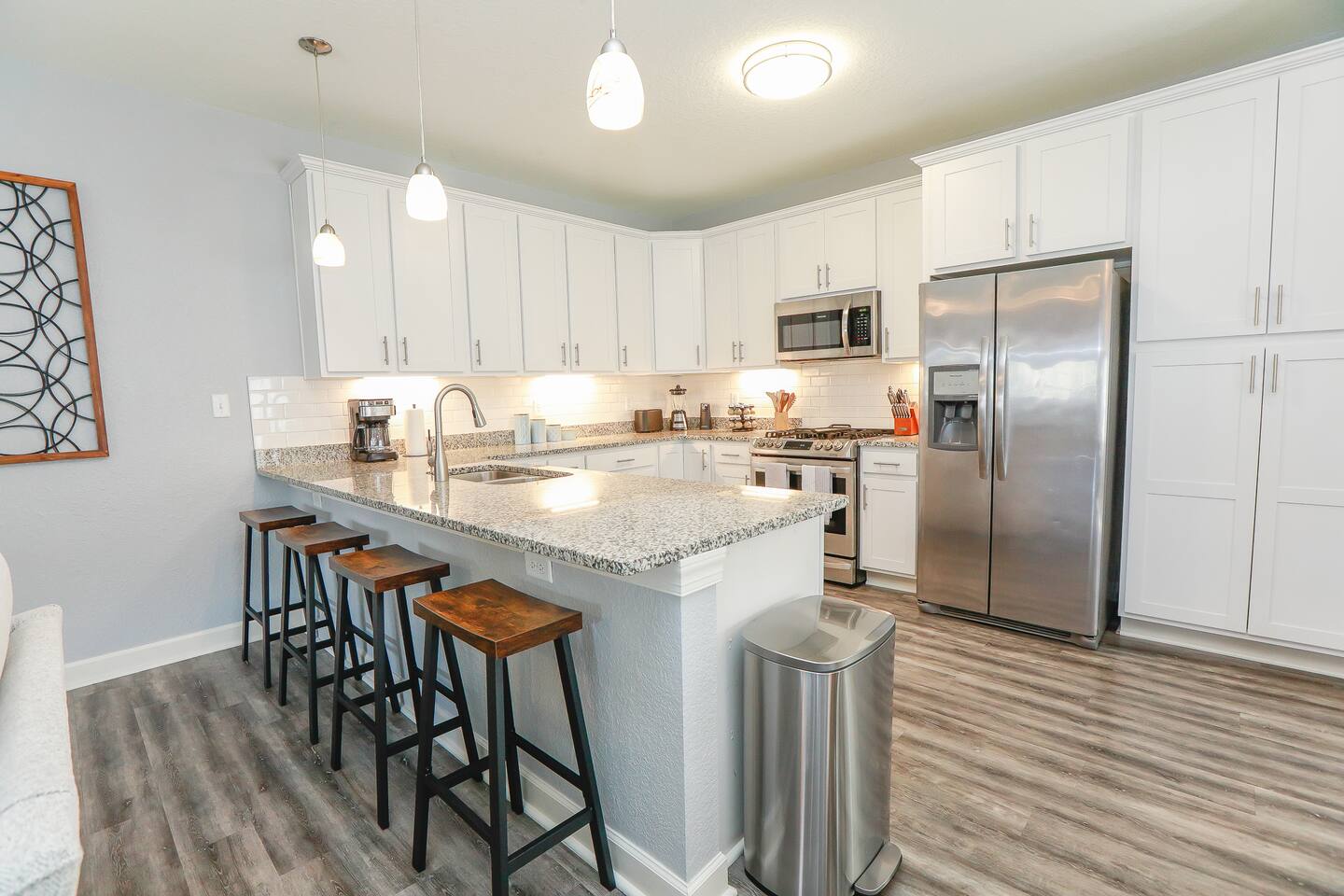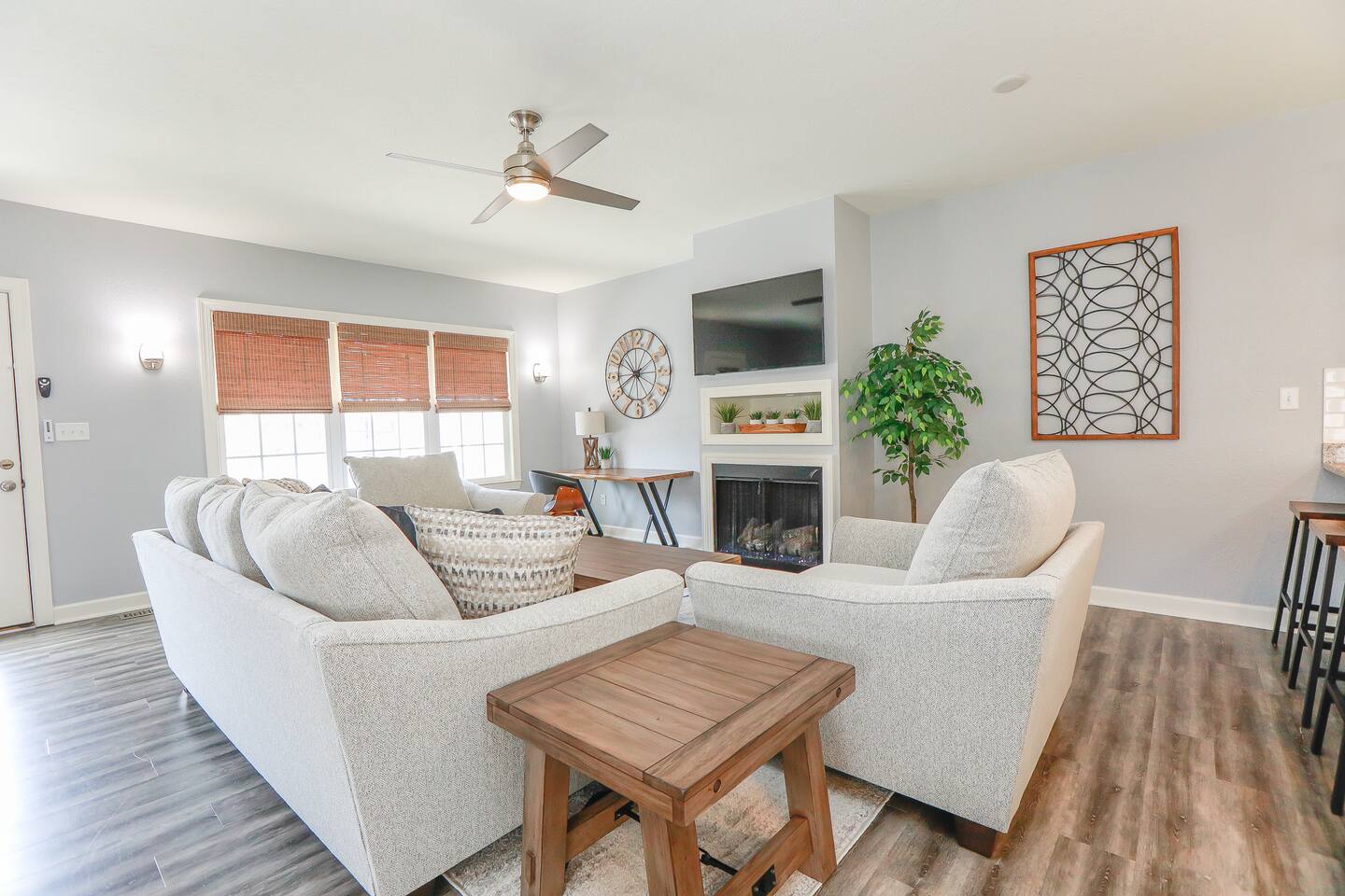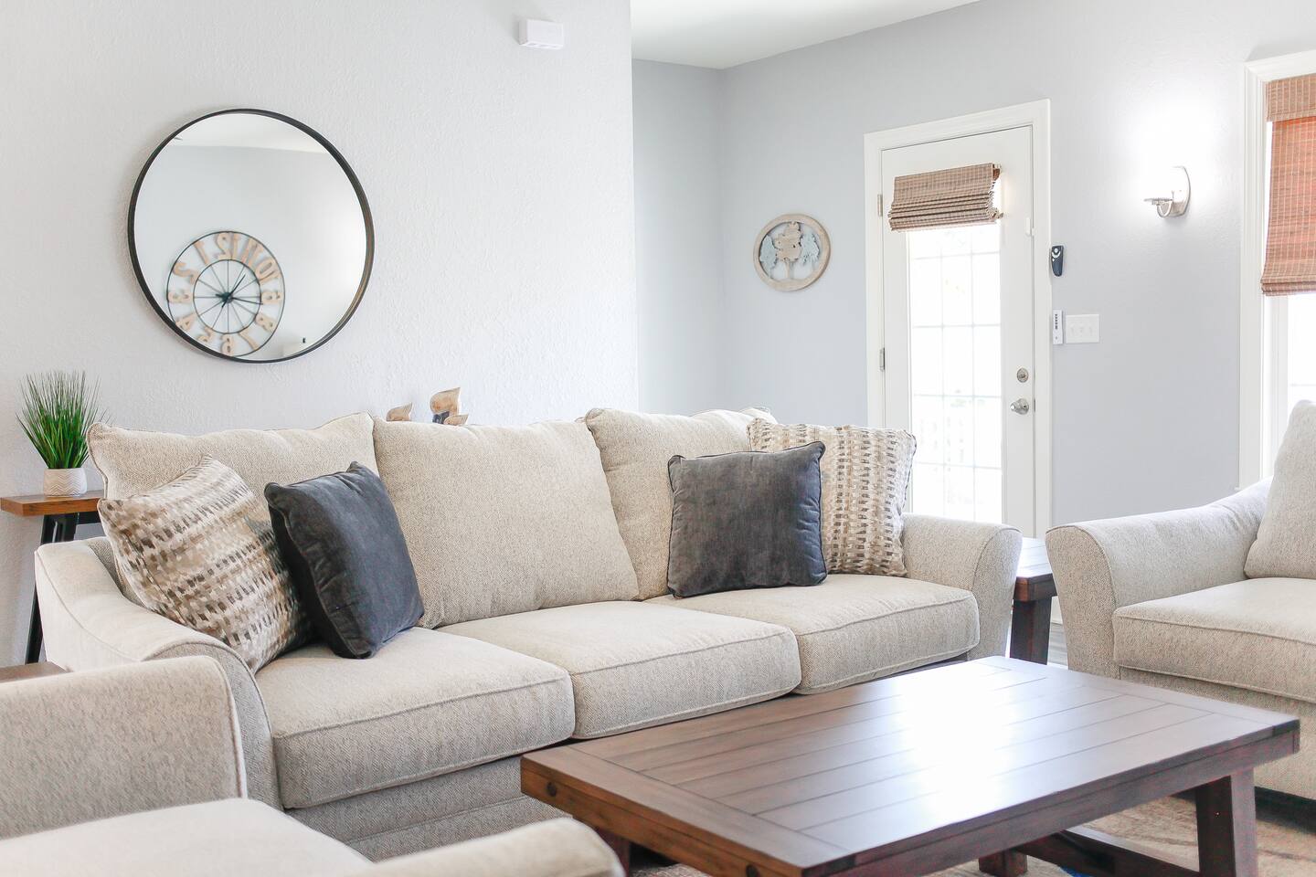 This area does have military installations nearby and loud jets will periodically fly overhead. Please be aware if you are sensitive to noise. House trained dogs that are pre approved are allowed! Pet fee is $100 per 10 nights. No puppies or cats allowed. Dogs must be crated when left unattended. Dogs must be supervised when in the backyard and may not be left in the backyard unattended. $50 pet waste fee will be applied if pets are not cleaned up after. Pets must be pre approved or a fine of double the pet fee per night will be applied. Please note while the home is cleaned very thoroughly between stays and air filters changed regularly, we do allow dogs at the home. Those with severe allergies will need to consider our home’s suitability for their unique needs. There are cameras on the exterior of the home. They are motion activated, records video and audio, and are active during reservations. There is also a decibel monitoring device located in the home. This is a smart device that measures decibel levels only and allows us to respond to extremely loud and sustained volumes. It does NOT record conversation, it only measures decibel levels. This helps us to avoid unauthorized parties. Our goal is for our guests and neighbors to both have an enjoyable experience! 30+ day stays require background check, lease, and deposit after booking. Booking will be canceled if not completed. All stays over 30 days are brokered by Sojourn Realty. Please note lawn care and trash service may come on the premises during your stay. Days and times vary, please inquire if you need more specifics on when to expect these services to take place during your stay.