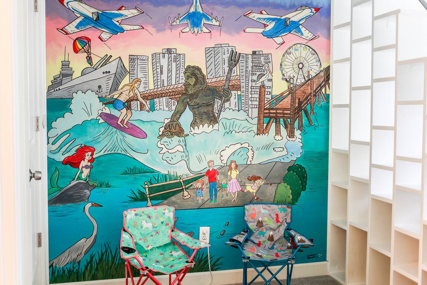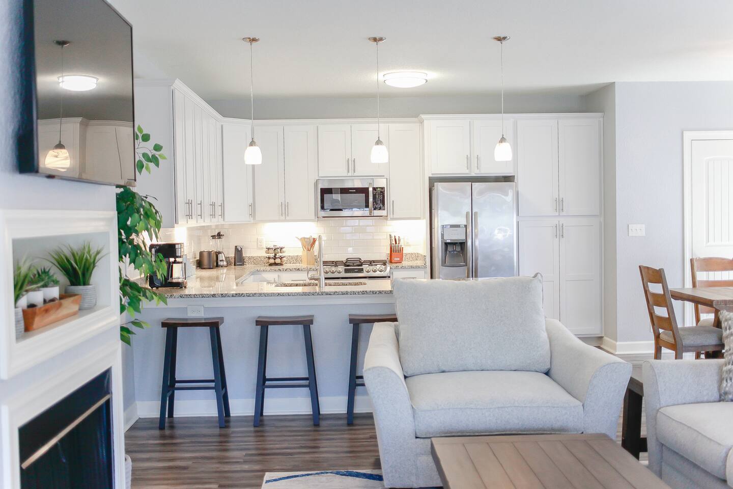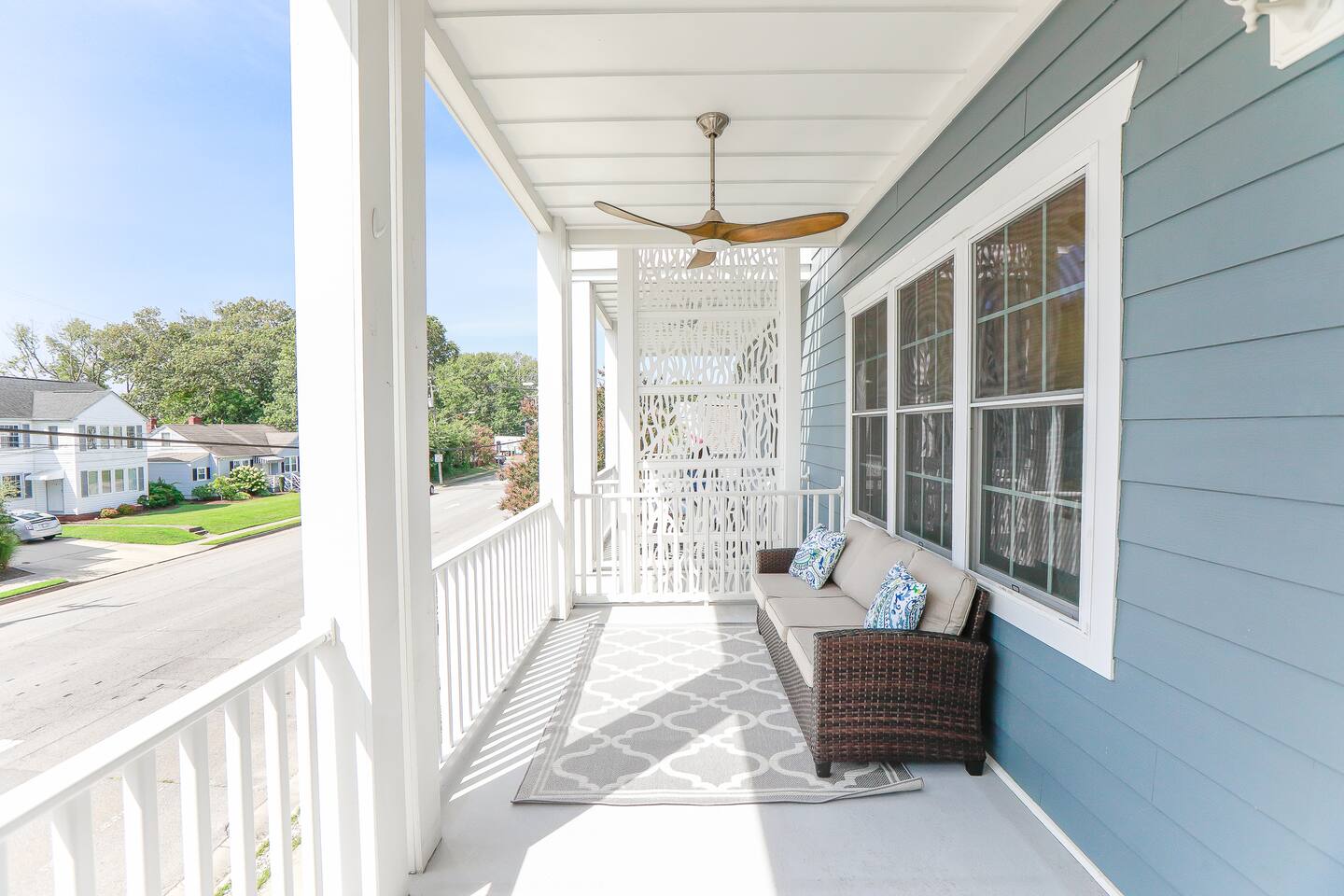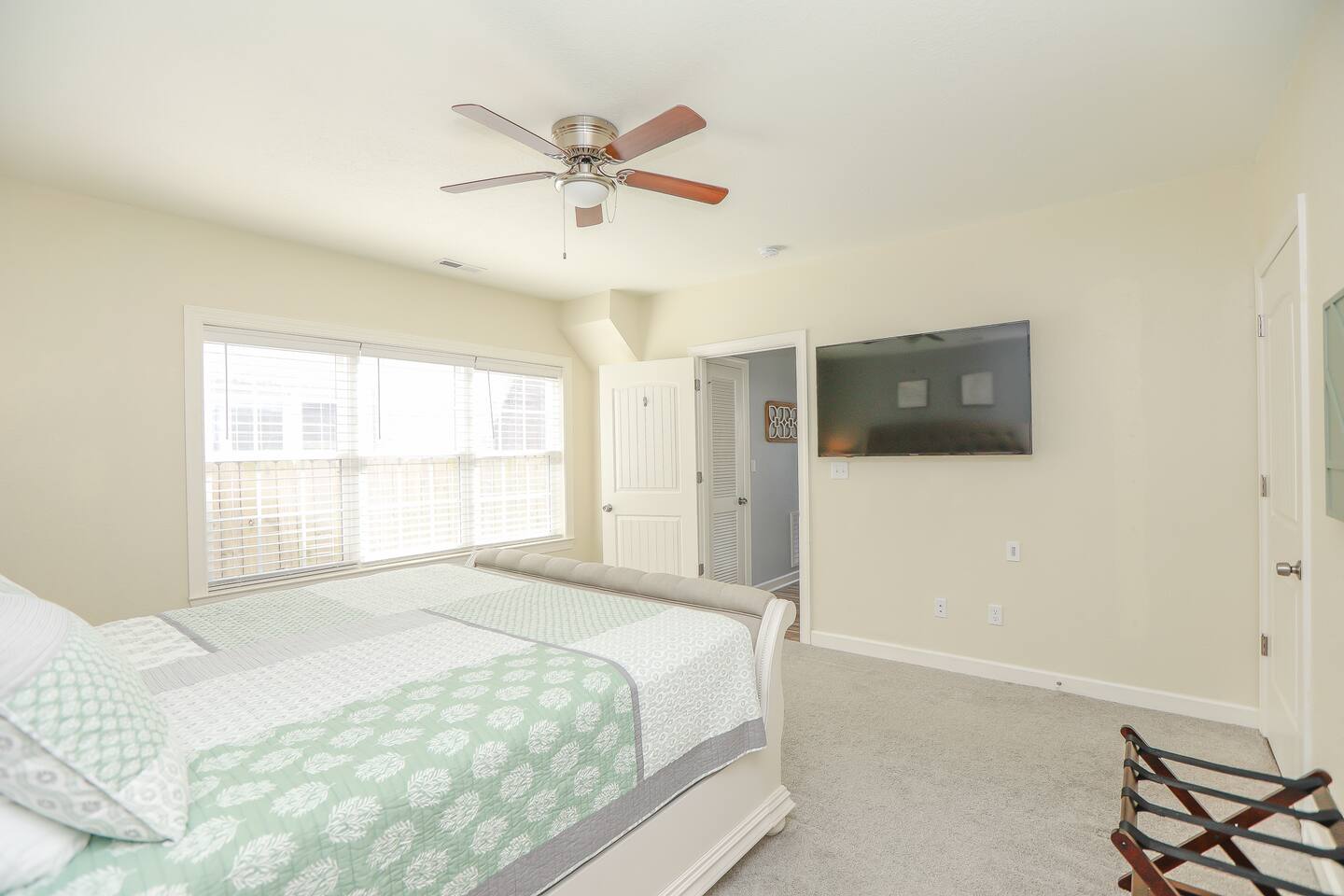 Home Highlights: • 4 spacious bedrooms, 3.5 baths – 3 Kings, 1 Queen (sleeps 8) • Open floor plan with abundant natural light • Fully equipped kitchen with cookware, dishes, and essentials • High-speed Wi-Fi and Smart TVs for work and entertainment • In-unit washer and dryer for convenience • All-new furnishings, linens, and kitchenware • Less than 10-minute walk to the beach • Beach gear included – chairs, cart, and more • Easy self check-in with smart lock • Heart of the VIBE District – walk to cafes, restaurants, and the Convention Center • Less than 1 mile to Atlantic Park Surf and The Dome music venue Pet Policy: • Dogs allowed with pre-approval (no puppies or cats) • Pet fee: $100 per 10 nights or $250/month • Dogs must be crated when left unattended and may not be left in the backyard unsupervised • $50 pet waste fee if waste is not cleaned up • Pets must be pre-approved or a fine equal to double the pet fee per night will apply • Guests with severe allergies should assess suitability before booking House Rules: • No smoking (weed or cigarettes) – $500 minimum fine • Maximum occupancy including visitors: 8 • Quiet hours: 9 p.m.–8 a.m. • No parties – $500 minimum fine • Late check-out: $75/hour without approval • Grill: clean after use to avoid $75 cleaning fee • Ice makers/fireplaces are amenities; no refunds if not functioning • Utilities must be used responsibly; excess usage may incur fees • No paper towels or wipes down drains; guests liable for plumbing costs • Third-party encrypted ID verification required • Report cleaning/maintenance issues during stay; no refunds if unreported • Lawn care and trash may occur during stay; schedule varies • Stays over 60 days require a clean every 30 days (included) • Stays 90+ days require application, screening, signed lease, and $1,000 deposit (brokered by Sojourn Realty) • No snow removal provided; use caution in winter weather Settle in and enjoy Virginia Beach living with easy access to the beach, local attractions, and dining… all while staying in a home designed for comfort, style, and extended stays.