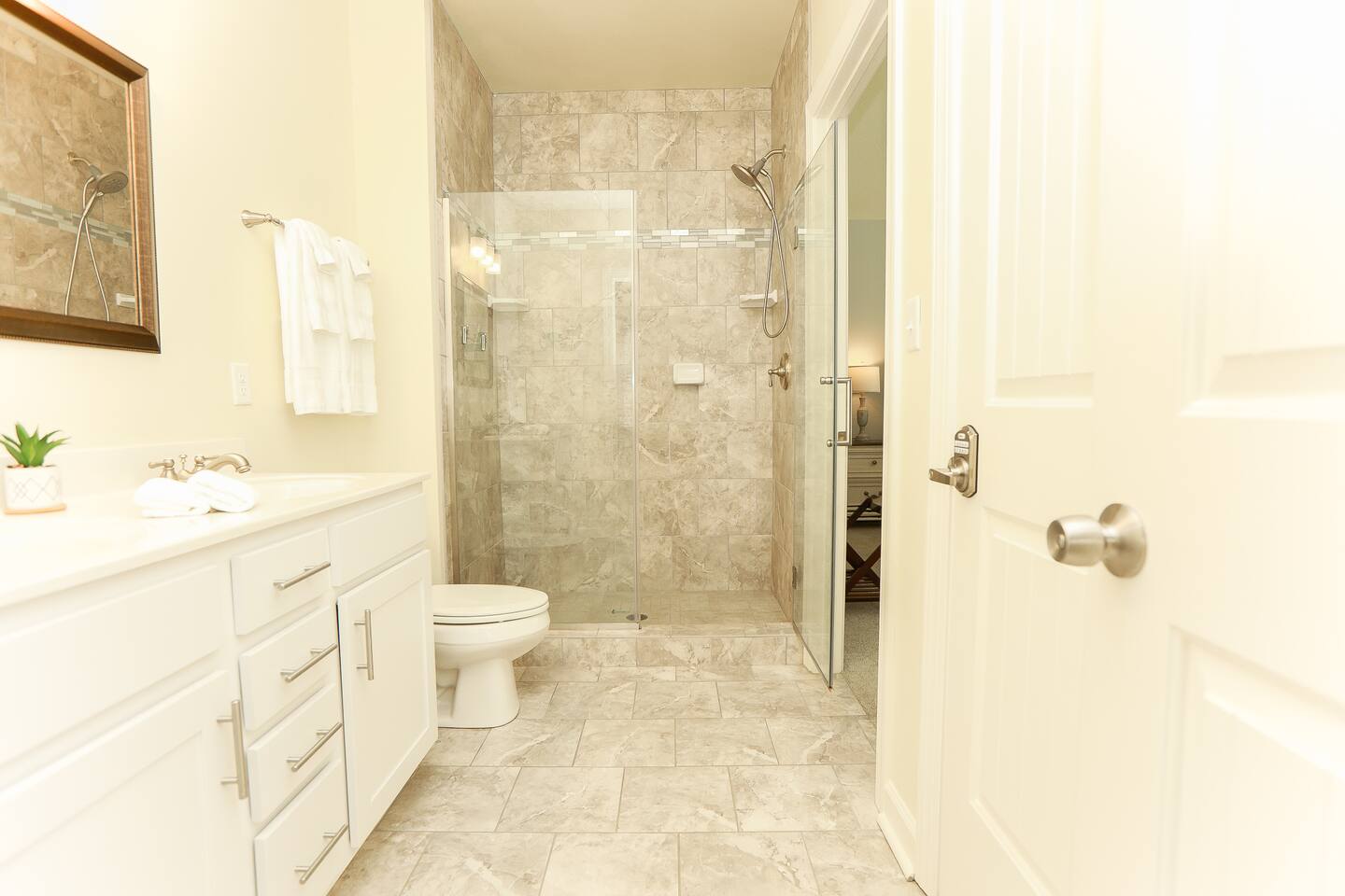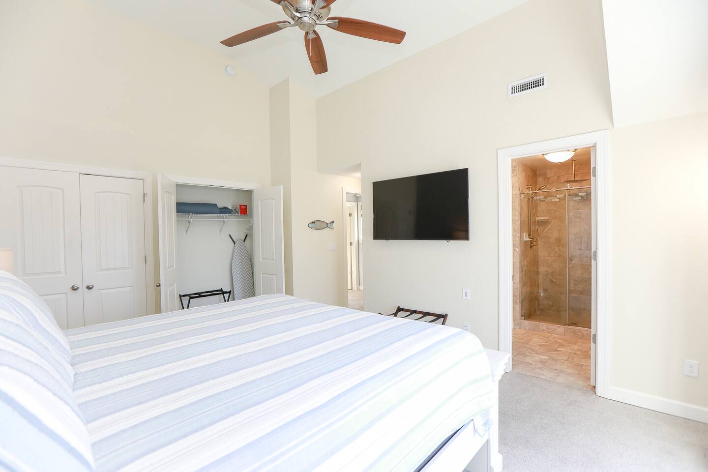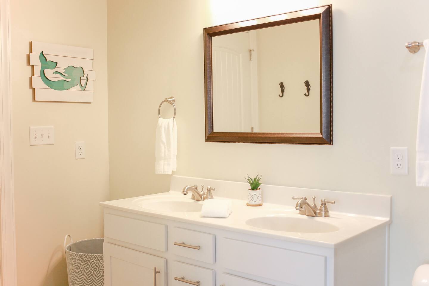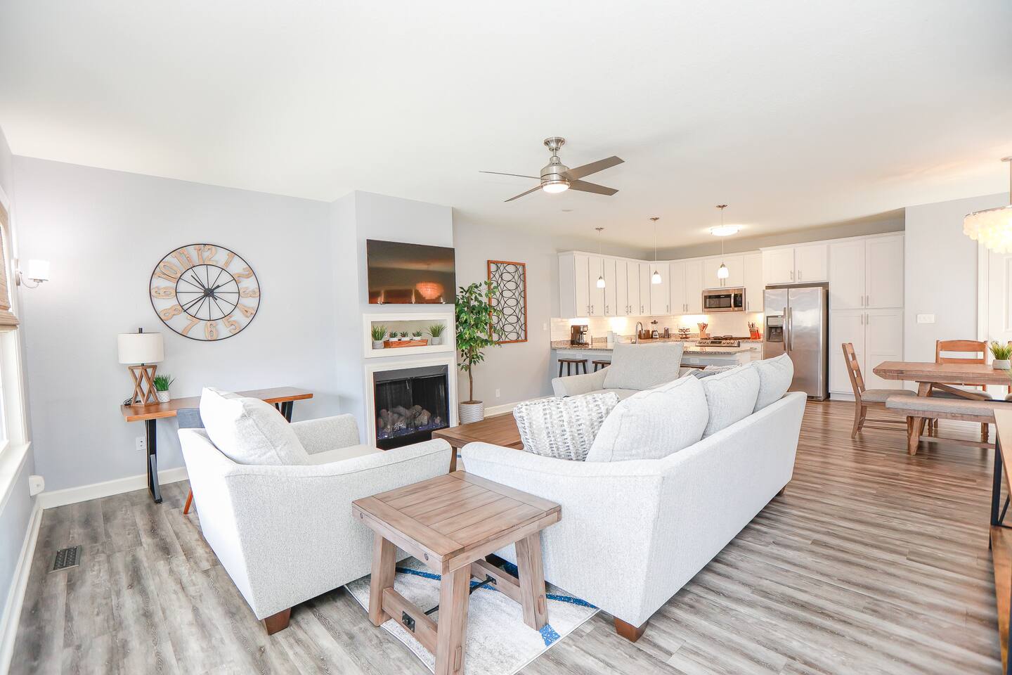 Home Highlights: • 4 spacious bedrooms, 3.5 baths – 3 Kings, 1 Queen (sleeps 8) • Open floor plan with abundant natural light • Fully equipped kitchen with cookware, dishes, and essentials • High-speed Wi-Fi and Smart TVs for work and entertainment • In-unit washer and dryer for convenience • All-new furnishings, linens, and kitchenware • Less than 10-minute walk to the beach • Beach gear included – chairs, cart, and more • Easy self check-in with smart lock • Heart of the VIBE District – walk to cafes, restaurants, and the Convention Center • Less than 1 mile to Atlantic Park Surf and The Dome music venue Pet Policy: • Dogs allowed with pre-approval (no puppies or cats) • Pet fee: $100 per 10 nights or $250/month • Dogs must be crated when left unattended and may not be left in the backyard unsupervised • $50 pet waste fee if waste is not cleaned up • Pets must be pre-approved or a fine equal to double the pet fee per night will apply • Guests with severe allergies should assess suitability before booking House Rules: • No smoking (weed or cigarettes) – $500 minimum fine • Maximum occupancy including visitors: 8 • Quiet hours: 9 p.m.–8 a.m. • No parties – $500 minimum fine • Late check-out: $75/hour without approval • Grill: clean after use to avoid $75 cleaning fee • Ice makers/fireplaces are amenities; no refunds if not functioning • Utilities must be used responsibly; excess usage may incur fees • No paper towels or wipes down drains; guests liable for plumbing costs • Third-party encrypted ID verification required • Report cleaning/maintenance issues during stay; no refunds if unreported • Lawn care and trash may occur during stay; schedule varies • Stays over 60 days require a clean every 30 days (included) • Stays 90+ days require application, screening, signed lease, and $1,000 deposit (brokered by Sojourn Realty) • No snow removal provided; use caution in winter weather Settle in and enjoy Virginia Beach living with easy access to the beach, local attractions, and dining… all while staying in a home designed for comfort, style, and extended stays.