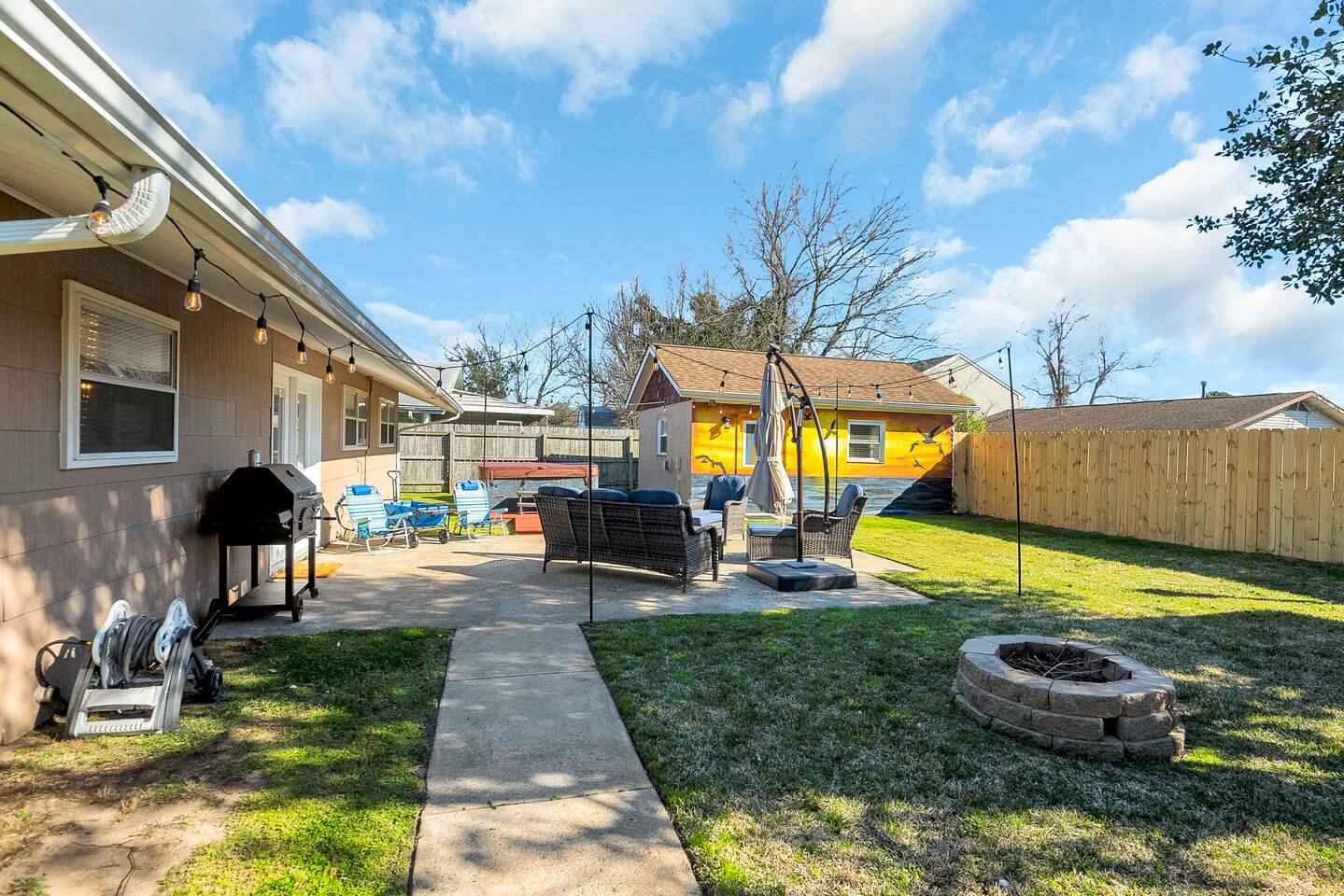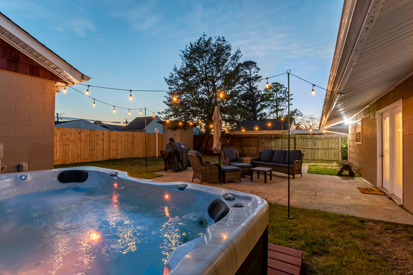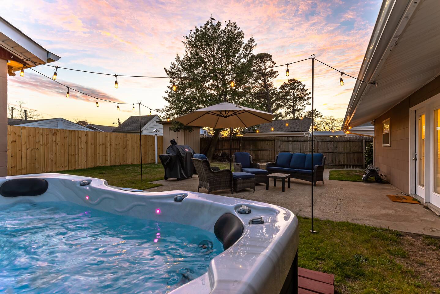 Stay awhile in our clean and spacious rancher with tons of extra amenities! Fully renovated and stocked, you will need to bring only a suitcase to stay. You won’t want to leave the stunning backyard space with a hot tub, nighttime lighting and comfortable seating space with a fire pit to enjoy each others company under the stars. Even including a bonus recreational room for multi purpose use; a foosball table, TV and arcade games for an additional entertainment space for kids of all ages, a desk if you need to work remotely in a separate and quiet area from the main house, and the couch pulls out into a bed for separate sleeping space. Featuring: * Space for up to 8 guests, with 3 bedrooms and 2 bathrooms in the main house- plus a bonus recreational space (heated and cooled!) with a pullout couch in the backyard. * Premium outdoor space featuring a fire pit and hot tub! * Bonus multi purpose space with a foosball table, arcade games, desk and a couch and TV plus a wet bar * 1 Queen sized bed, 1 full and 2 twins, plus a fold out queen sofa bed in the multi purpose room * Fully stocked and renovated kitchen * Convenient location 1 block to the beach, beach gear provided! (Beach cart, 2 chairs and an umbrella) * only a 10-15 minute drive to Virginia Beach and Hampton * Full use of washer/dryer * Brand new premium pillows and mattresses * Beach gear included! * Convenient self check in with electronic keypad * Fast WiFi * TVs in ALL bedrooms! *Linens and towels provided All new furniture, premium mattresses and pillows and all amenities, it has been designed with your comfort in mind. Enjoy self check-in for your convenience with the electronic door lock. COVID-19 update: We have implemented strict cleaning measures for disinfecting the house between guests. In addition to our regular high standards, we are disinfecting all light switches, remotes, doorknobs, keypads, all surfaces, and any additional heavily touched surfaces around the space. We want you to have a peace of mind and consider us a retreat today and always. Please consider purchasing third party travel insurance as coronavirus restrictions and cases are changing to protect your trip. Our cancellation policy is firm.