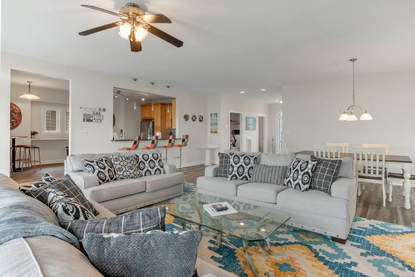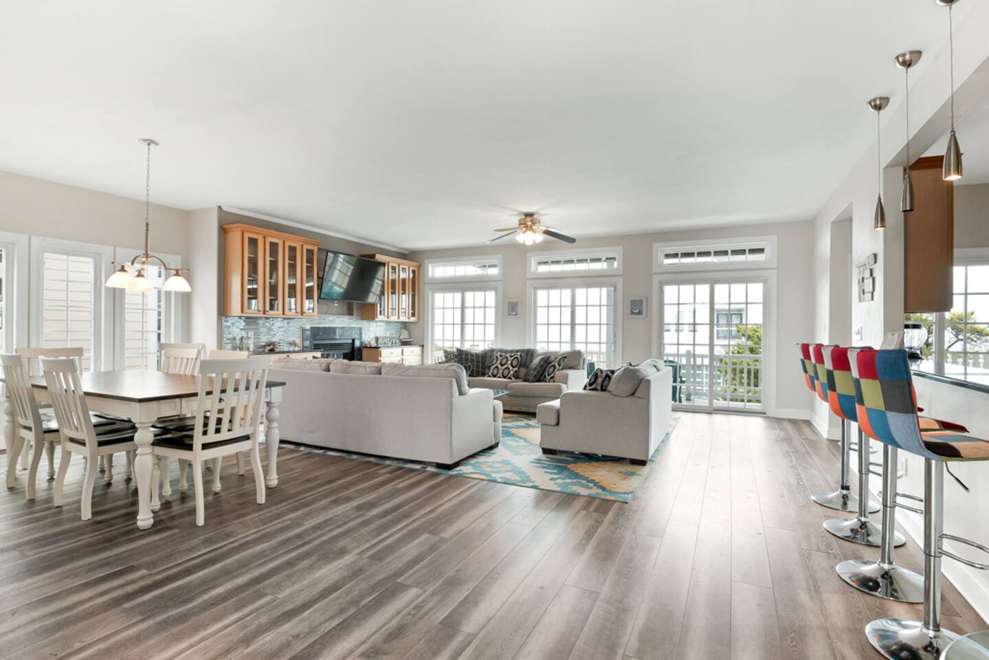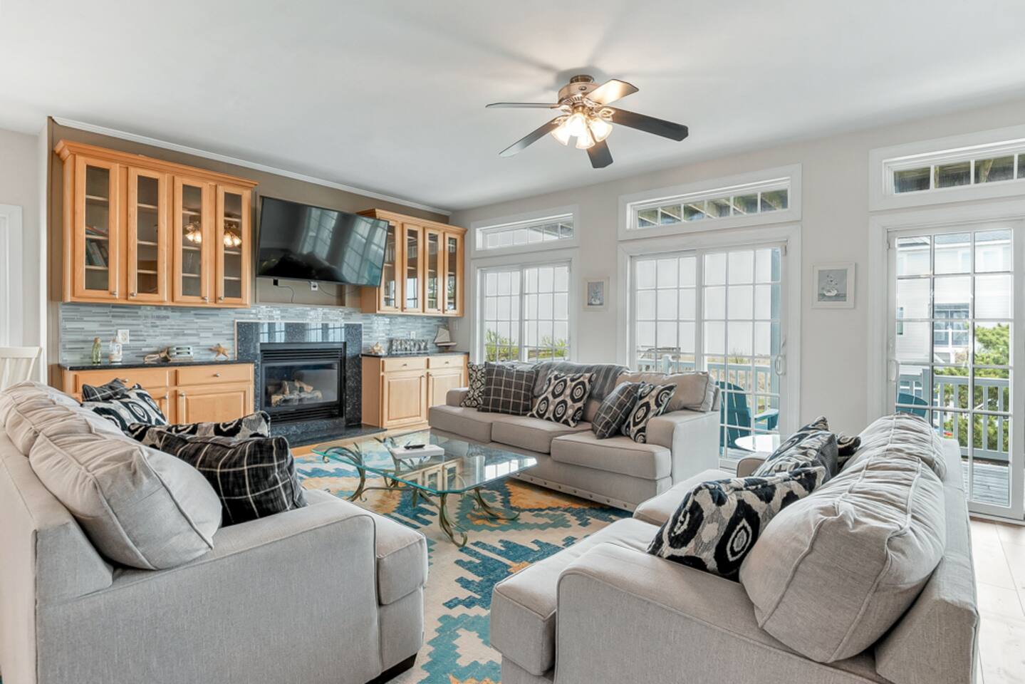 The space AMENITIES: *20 Second Walk to the Beach! *Stunning beach views from multiple decks and windows *500 Mbps high-speed internet *55" Smart TV in living room and 50" Smart TV in each KING bed bedroom (4 rooms) *Washer and dryer for your use *Free Parking driveway *Kitchen stocked with plenty of silverware, plates, cups, pots pans and knives *Coffee pot AND Keurig *Bath towels and sheets provided *Beach towels and beach chairs provided *Dog friendly (extra fees apply, please read house rules for more information regarding pets) ROOMS: Master: 3rd floor, HUGE, king bed, sleeps 2, private bath, private deck 2nd Bed: 3rd floor, king bed, sleeps 2, shared bath on 3rd floor 3rd Bed: 2nd floor, king bed, sleeps 2, shared bath on 2nd floor 4th Bed: 1st floor, king bed, sleeps 2, shared bath on 1st floor 5th Bed: 1st floor, 4 twins (2 sets of bunk beds), sleeps 4, shared bath on 1st floor. Bottom bunks: For children or adults, weight limit 200lbs Top bunks: Children only please, weight limit 160lbs Located just one house back from the beach, this location provides excellent beach access while also conserving a bit of privacy by not being right on the beach. There is one house between this property and the beach, but the rest of the land is empty lots. Great ocean views! BEACH DOG RULES: Dogs are allowed on the beach on-leash during the offseason. Through the summer, specifically the Saturday before Memorial Day through Labor Day, dogs are not allowed on the beach between the hours of 10am - 6pm. Permit Number: ZP24-00875