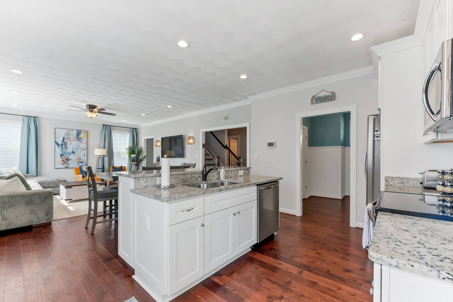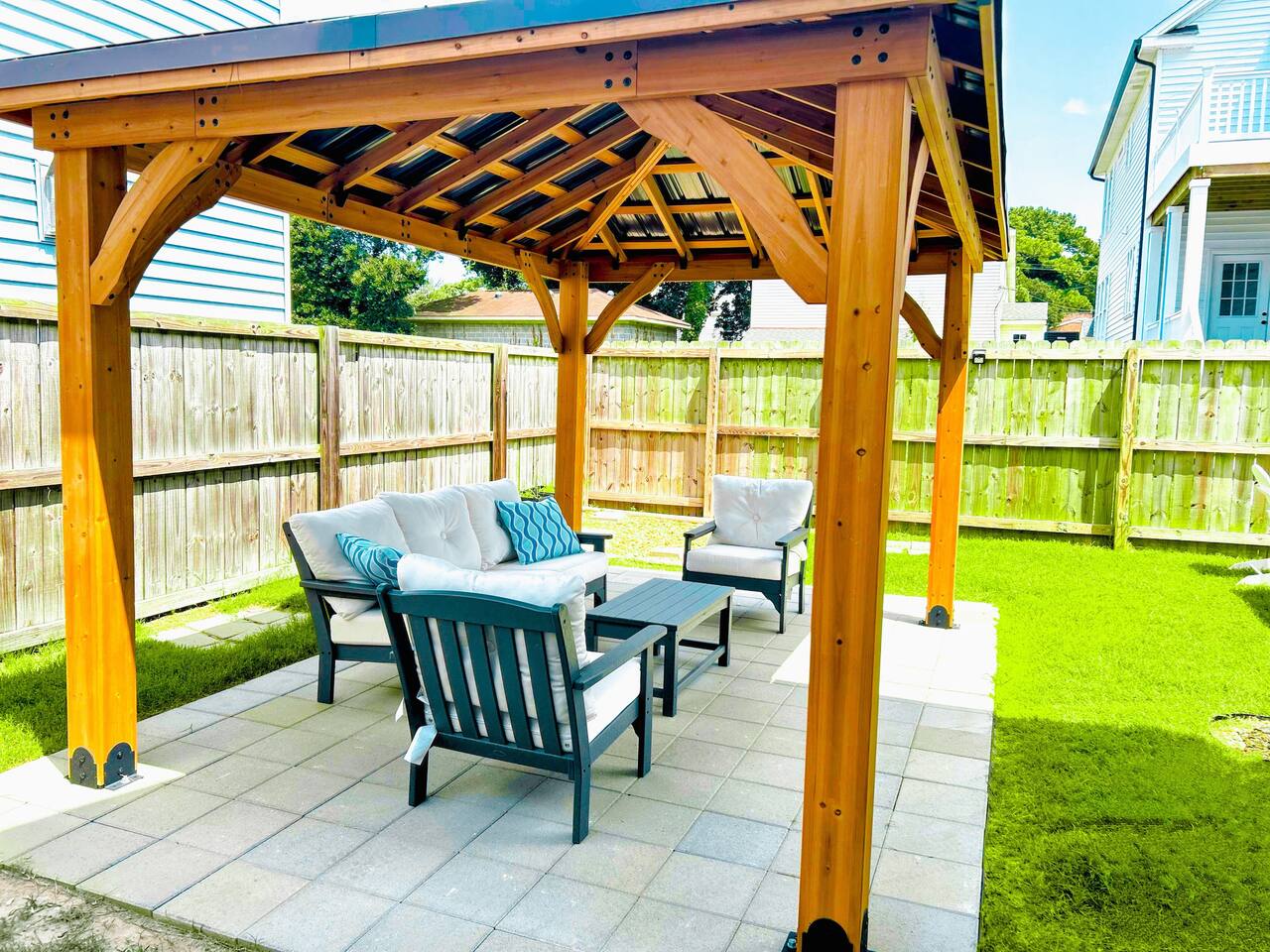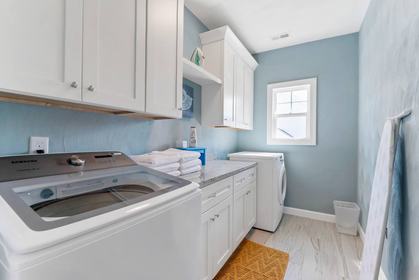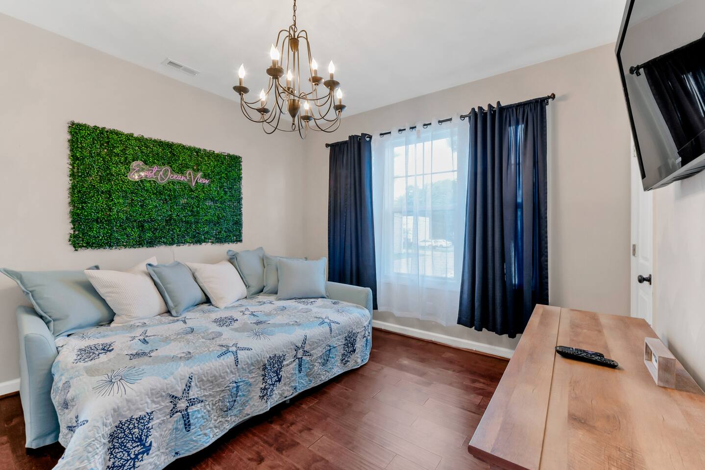 Beach days made easy! Walk into a spacious 5-bedroom retreat with 9 comfy beds, fast Wi-Fi and a full kitchen. 1 King, 1 Queen, bunk & twin options – perfect for groups 5-minute stroll to the sand BBQ grill, fire-pit & fenced yard for family fun Smart TVs in every room, dedicated workspace Minutes to Bay Oaks Park, Eagle Haven Golf Course and local eateries. Book now for stress-free coastal living!