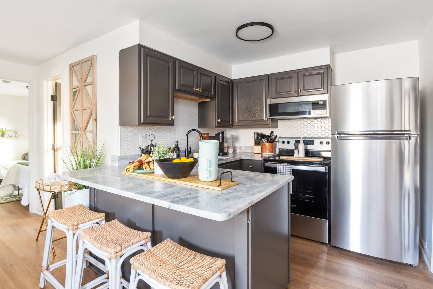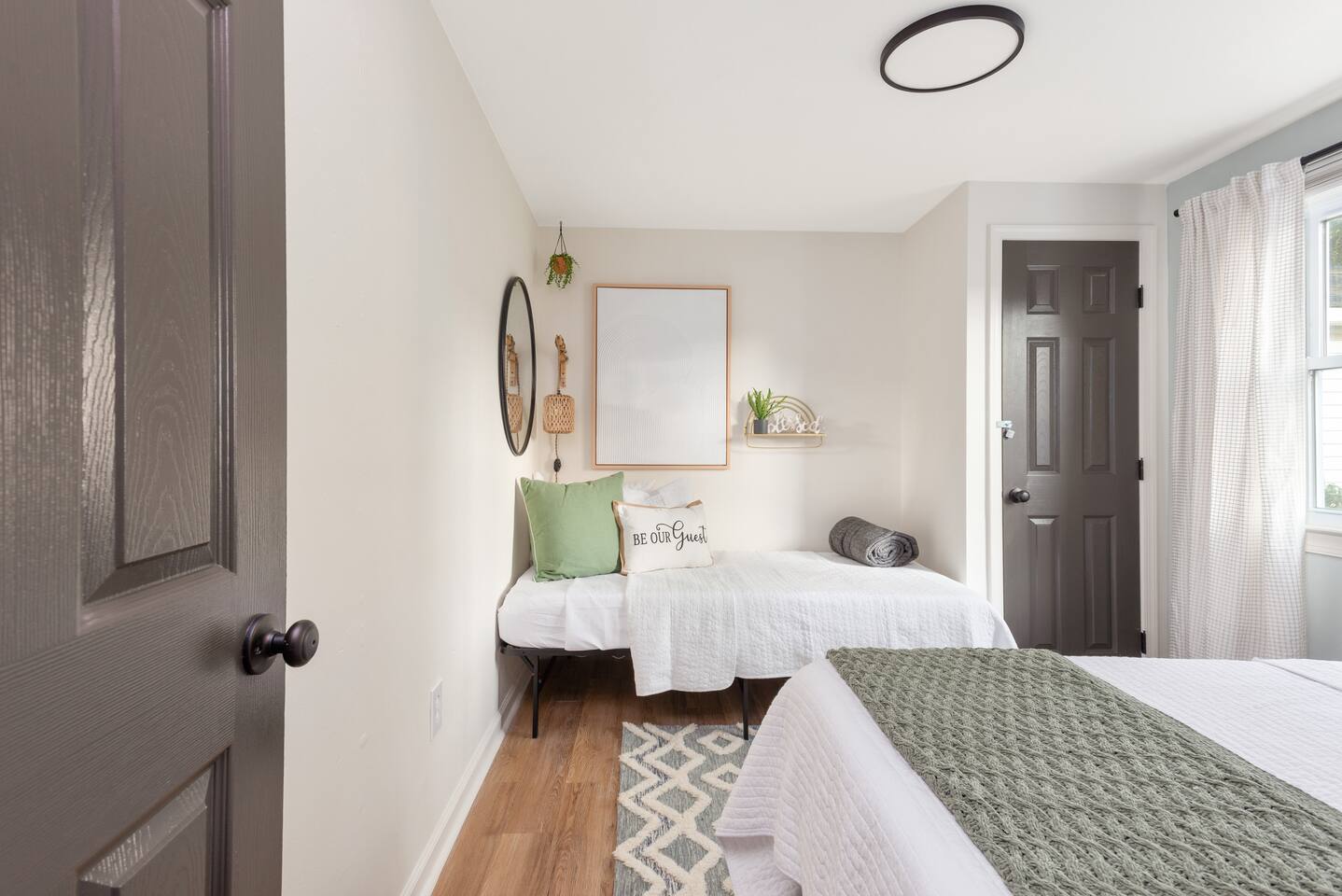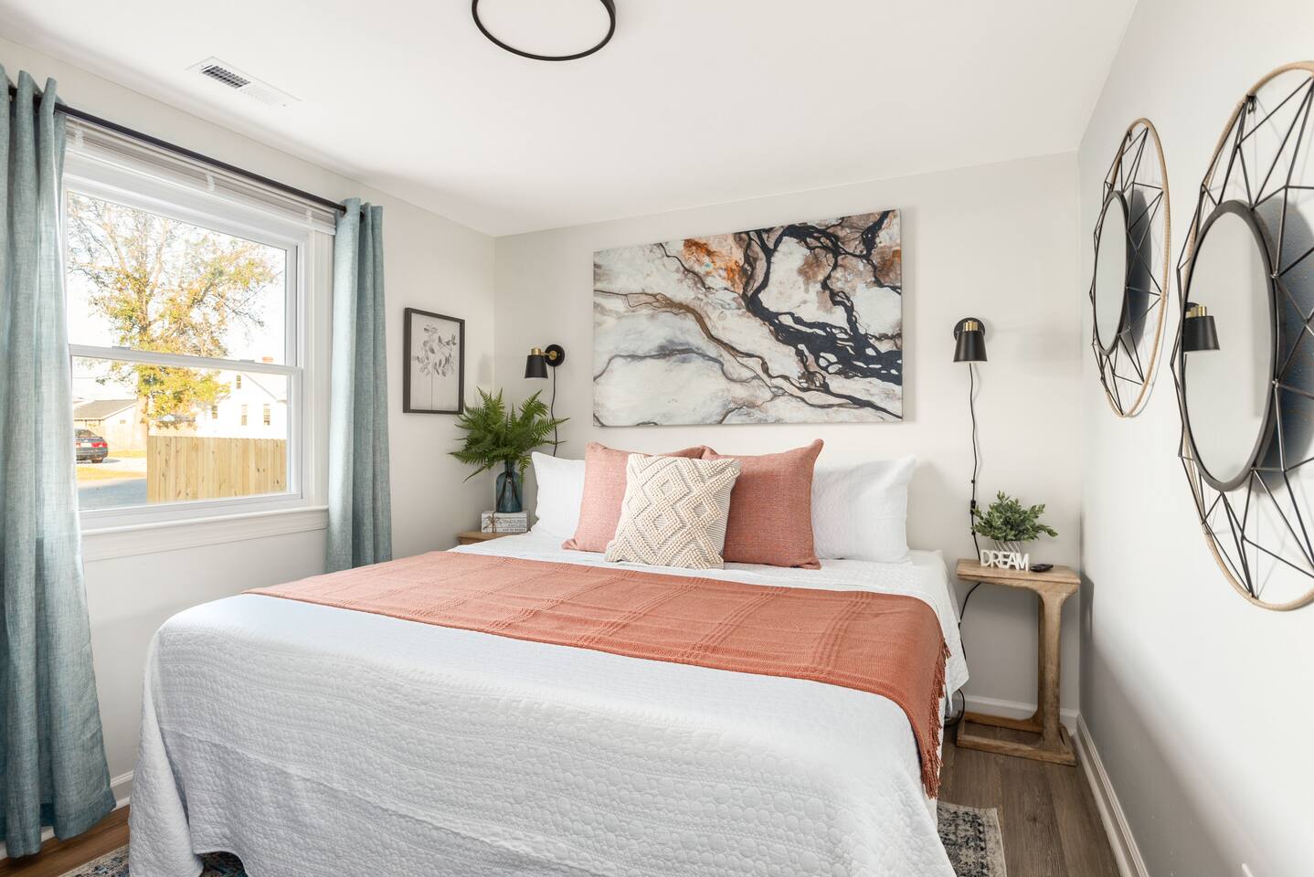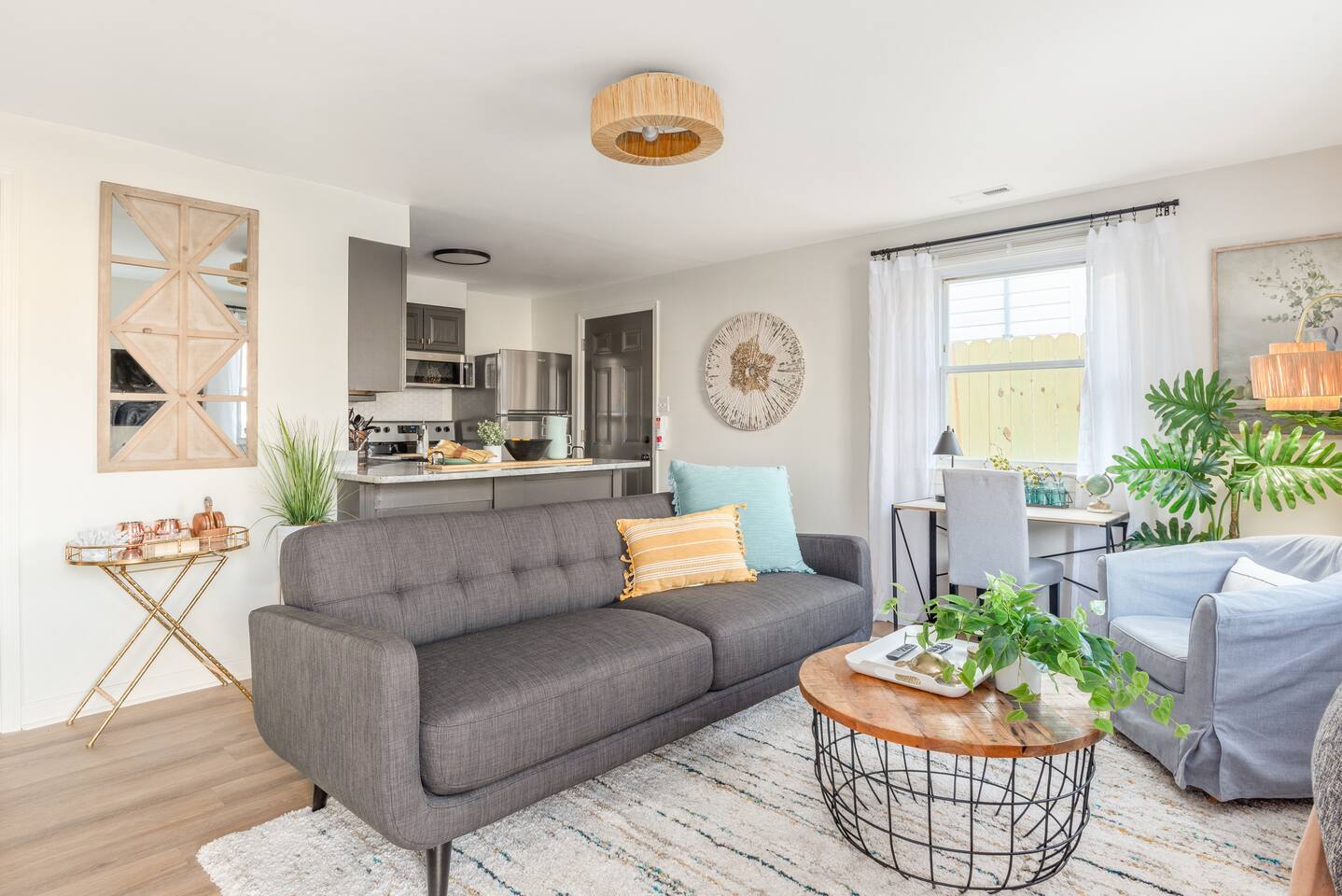 The firepit in back is shared with the cottage that is located in the back. They have a walkway to the left of the home back to their cottage. **There is limited parking. You may park on the right hand side of the driveway. The left hand side is reserved for the home behind this one. There are cameras on the exterior of the home. They are motion activated, records video and audio, and are active during reservations. There is also a decibel monitoring device located in the home. This is a smart device that measures decibel levels only and allows us to respond to extremely loud and sustained volumes. It does NOT record conversation, it only measures decibel levels. This helps us to avoid unauthorized parties. Our goal is for our guests and neighbors to both have an enjoyable experience! *An application, screening, signed lease and deposit is required for 90+ day rentals-please inquire for more details. Bookings over 90 days are brokered by Sojourn Realty. Please note lawn care and trash service may come on the premises during your stay. Days and times vary, please inquire if you need more specifics on when to expect these services to take place during your stay.