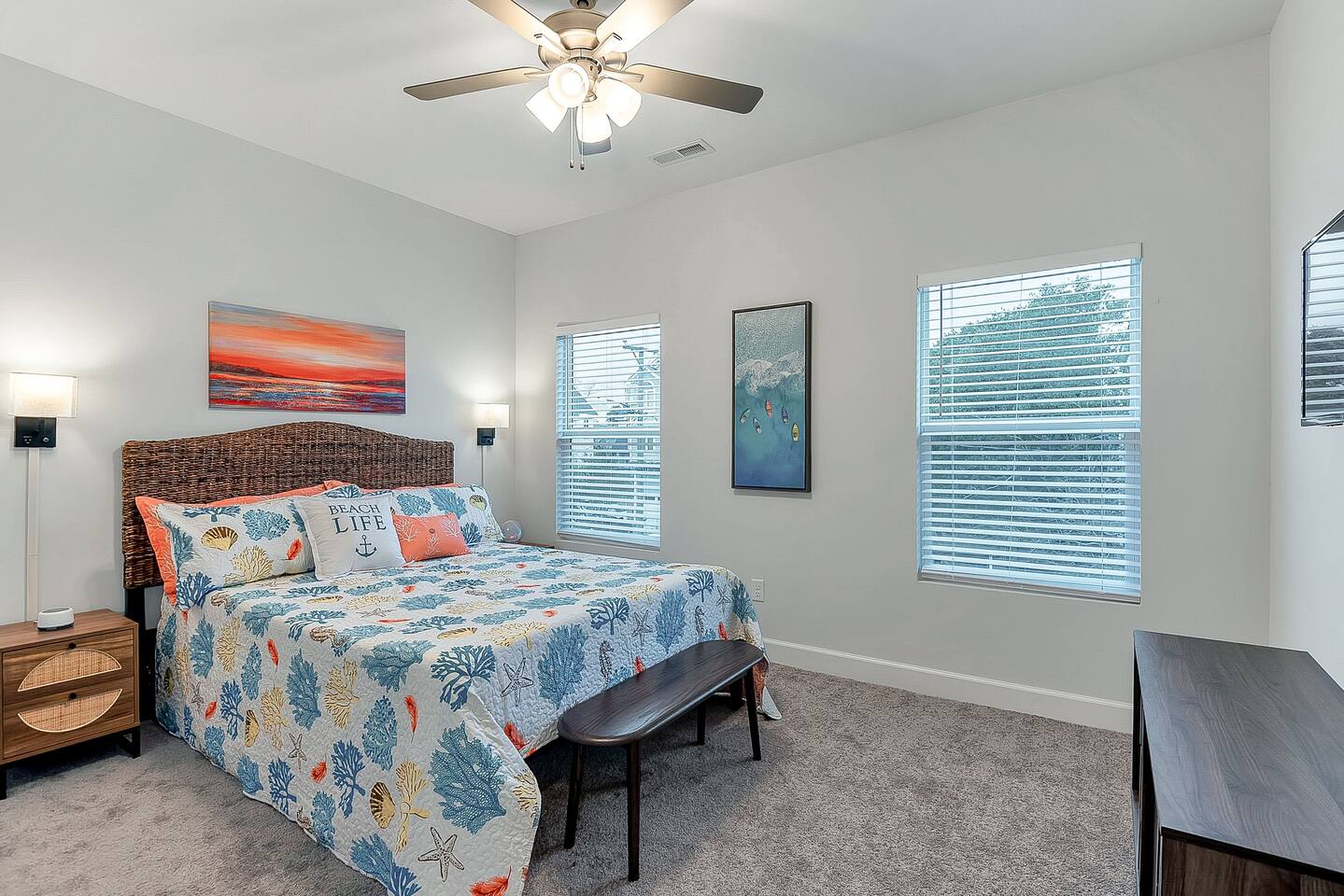 Inside Sheila by the Sea: ☆☆ Bedrooms & Bathrooms ☆☆ - 1 King Bedroom, 2 Queen Bedrooms, 2 Twin Beds for the kids - High-end linens, plush carpeting, and plenty of storage space to feel at home - Primary Bathroom features a spacious stand-up shower & double sinks – perfect for busy mornings - Kid-friendly Beach Vibe twin beds to make little ones smile ☆☆ Chef's Kitchen ☆☆ - Fully equipped with stainless steel appliances, plenty of counter space, and all the tools you need - Spacious wooden cabinetry stocked with crockery, utensils, and everything for meal prep - Perfect for creating family meals, whether you’re cooking up a feast or just a quick snack ☆☆ Living Room & Loft ☆☆ - Open-concept space with plush furnishings, vibrant area rug, and flat-screen TV - Desk area in the main bedroom for work on the go with high-speed WiFi ☆☆ Outdoor Space ☆☆ - Fenced-in front yard for the kids and four-legged friends to run and play - Relaxing balcony with seating to enjoy the view and watch the kids Key Features: * 1 King Bedroom, 2 Queen Bedrooms, 2 Twins 2.5 bathrooms (1 stand-up shower & 1 tub/shower combo) * Fully equipped gourmet kitchen * Desk + high-speed WiFi for work or leisure * Sleek Smart TVs in living areas & bedrooms * Pet-friendly (pre-approval and additional fee required – please check house rules) Nearby Attractions (within 10 miles): - Nauticus National Maritime Center – Hands-on exhibits for all ages - Chrysler Museum of Art – Over 30,000 works from ancient to modern times - MacArthur Center – Shopping, dining, and entertainment - Military Aviation Museum – Vintage aircraft and history exhibits - First Landing State Park – Hiking trails, beaches, and picnic areas
