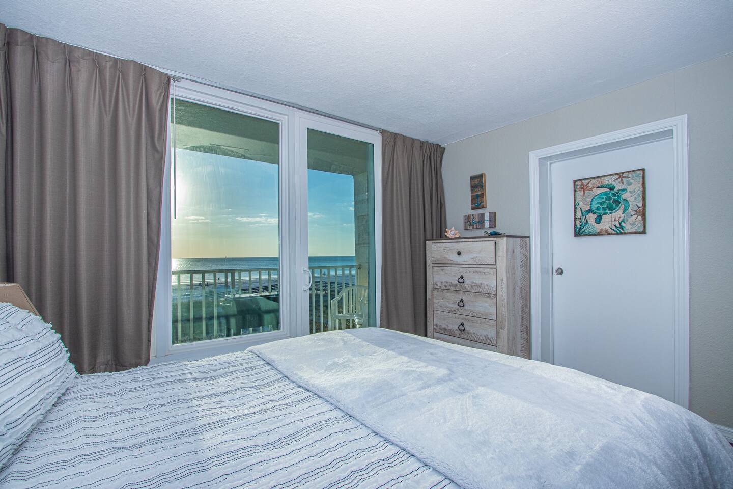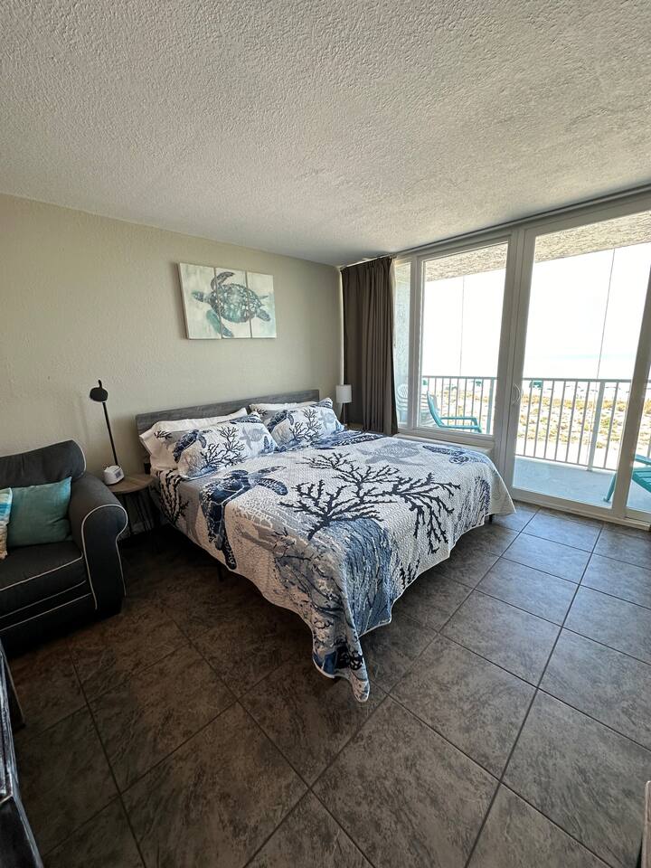 THE UNIT This Clean & Spacious Unit features: - Direct oceanfront views with a balcony! - Bathroom equipped with tile shower -TV with Cable and WIFI provided - Brand new KING bed with linens and towels included (please bring your own beach towels or plan to purchase) - Sofa Bed - Kitchenette with Full sized Fridge, microwave, toaster, hot pad, and coffee maker! -NO additional resort fee for our unit! THE PROPERTY Our family-friendly resort provides the following on-site amenities: - Direct beach access - 24/7 Front desk - Heated swimming pool - Poolside Tiki Bar offering drinks and small meals -Gas BBQ grills on the beach - Beach Loungers, Umbrellas and other beach equipment are available for rental -Volleyball Net - Boat Launch Ramp available - Free parking for 1 car - Washers/ Dryers for community use!