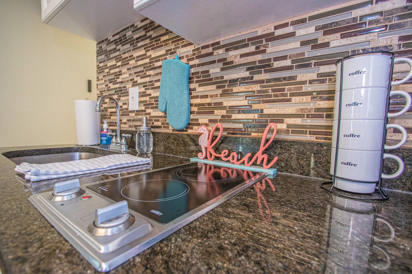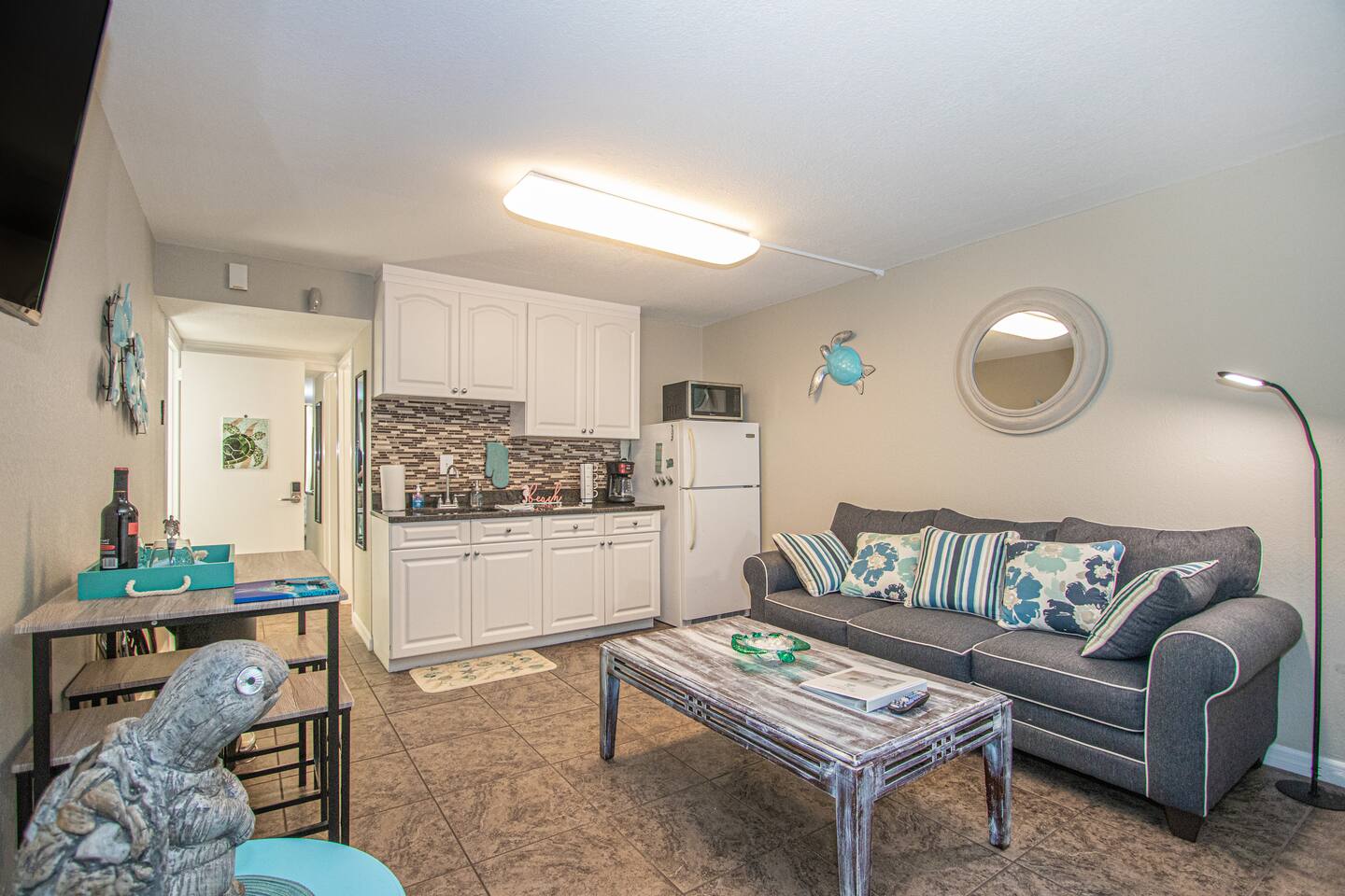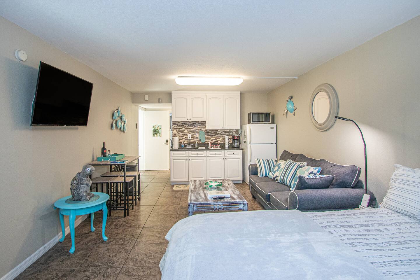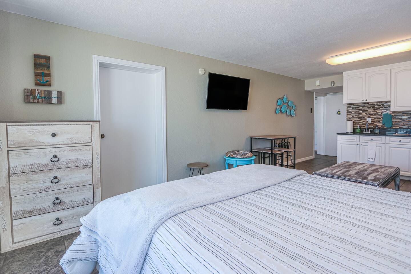 Entire studio unit for your private use! Heated pool, volleyball nets, tiki bar and other common amenities will be shared with other guests of the resort. Looking for more space? See our page for booking our adjacent Seahorse suite!