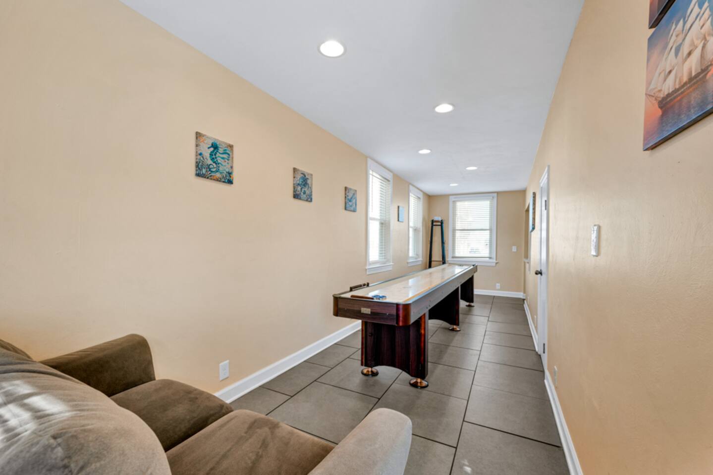 Property Highlights: - Accommodations for up to 6 guests, featuring 3 queen beds - Fully Stocked Home: Equipped with everything you need for a comfortable trip, including fresh linens, towels, and toiletries; a fully equipped kitchen with cookware, dishes, and essentials; high-speed Wi-Fi and a Smart TV for streaming your favorite shows; and a washer & dryer for added convenience - This home also offers shuffleboard for extra fun on those rainy days you can't enjoy the beach. Prime Location: Situated in Willoughby Spit in Ocean View, you’ll be close to the best spots in the area, including: Ocean View Beach Park: A family-friendly spot with free parking and lifeguards on duty from 10 a.m. to 6 p.m. Memorial Day through Labor Day. Ocean View Station Museum: Learn about the history of Ocean View from the 1880s to the 1980s, featuring artifacts like a rollercoaster car and a boat from the former Ocean View Amusement Park If you love seafood check out these great local spots: Ocean View Fishing Pier Restaurant: Enjoy fresh seafood with waterfront views. Stony’s Dockside Bar and Grill: A popular spot for seafood and drinks.