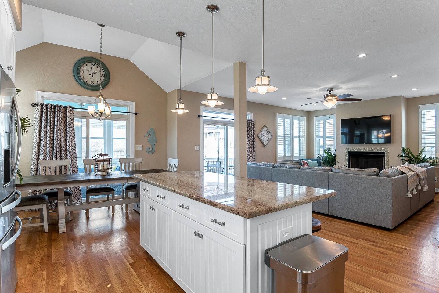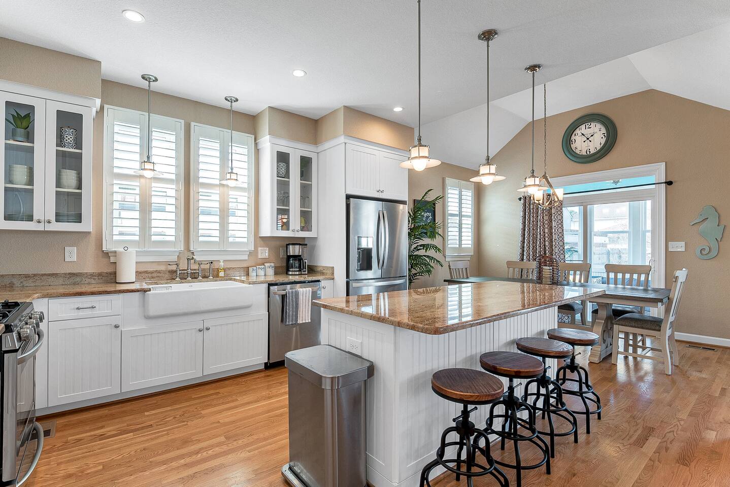 Welcome to the Vibe District in Virginia Beach! Tastefully designed and spacious for up to 10 guests- you will not find a better location! - Easy walk to the beach- right down the street! We provide beach towels and gear for you to use! - Fully stocked kitchen and full use of washer/ dryer & high speed WiFi. - 1 mile to the Virginia Beach Convention Center - LESS than 1 mile to the Atlantic Park Surf AND The Dome music venue - Within walking distance of restaurants and shops - All linens are provided for you Featuring 5 bedrooms and 3.5 bathrooms, plenty of space for the whole group. Welcome to your new favorite vacation spot! No expense has been spared- all new furniture, premium linens and all amenities, it has been designed with you in mind. Featured in one of the most famous neighborhoods in Virginia Beach- the VIBE district- you will be in the heart of it all. Within walking distance of the beach, coffee shops, restaurants and activities, this is truly the best location for any trip! Enjoy self check-in for your convenience with the electronic door lock. Perfect single family home featuring 5 bedrooms and 3.5 baths, the home comfortably accommodates a group with many separate spaces for enjoying each other's company. The first level has 2 bedrooms with queen beds, one room with an ensuite bathroom and the other with a half bathroom nearby attached to the laundry room. The main space on the first floor features a spacious living room and the fully-stocked gourmet kitchen with a large island. ALL bedrooms and the living room have TV's plus other apps you can sign into your own accounts. Off of the dining space, there is a beautiful sun room to relax, and a fenced backyard with cornhole boards , a gas grill and plenty of places to sit in the backyard. The second level has 3 bedrooms. The large master suite features a King sized bed and a massive shower and walk in closet in the ensuite bathroom. The other two bedrooms have comfortable queen sized beds and share a bathroom with a shower/tub combo. With provided beach gear, high speed WIFI, and a great outdoor space this will become your new go-to spot! Sorry, no pets allowed. COVID-19 update: We have implemented strict cleaning measures for disinfecting the house between guests. In addition to our regular high standards, we are disinfecting all light switches, remotes, doorknobs, keypads, all surfaces, and any additional heavily touched surfaces around the space. We want you to have a peace of mind and consider us a retreat today and always. Please consider purchasing third party travel insurance as coronavirus restrictions and cases are changing to protect your trip. Our cancellation policy is firm.