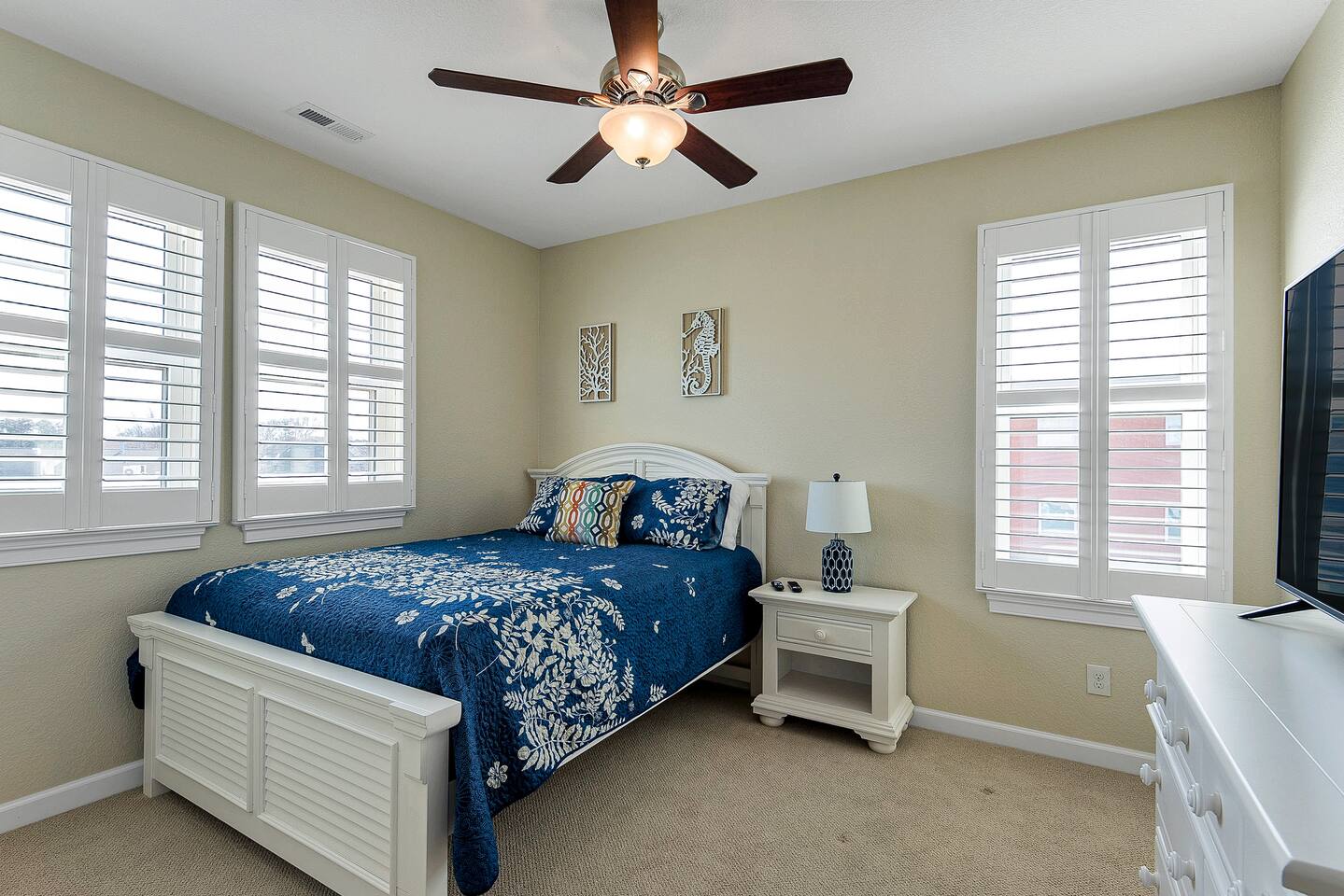 Welcome to the perfect blend of relaxation and spacious coastal living at this stunning 5-bedroom, 3.5-bath home near the beach. With 5 comfortable bedrooms and Smart TVs in each, it’s perfect for large families or groups. Enjoy a fully equipped kitchen, Wi-Fi, streaming, and a private yard with a gas grill and cornhole boards. Just a short stroll from the beach, you’ll have easy access to sun, sand, and fun. Whether for a weekend or extended stay, this home truly has it all!