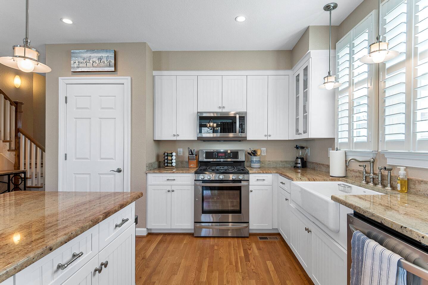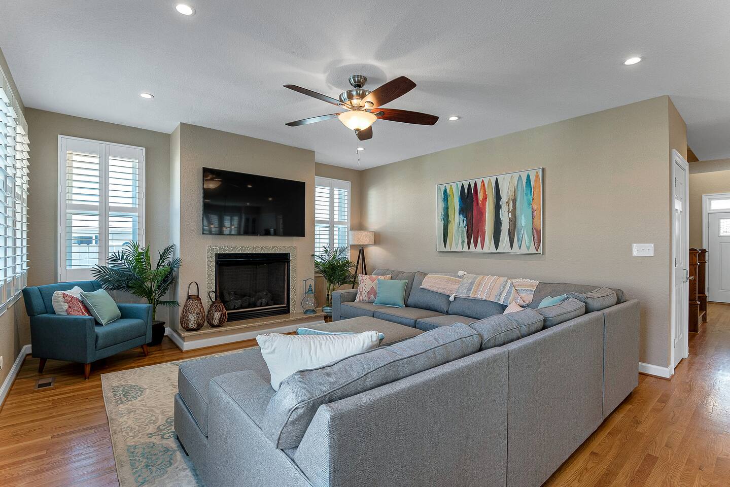 This area does have military installations nearby and loud jets will periodically fly overhead. Please be aware if you are sensitive to noise. There are cameras on the exterior of the home. They are motion activated, records video and audio, and are active during reservations. There is also a decibel monitoring device located in the home. This is a smart device that measures decibel levels only and allows us to respond to extremely loud and sustained volumes. It does NOT record conversation, it only measures decibel levels. This helps us to avoid unauthorized parties. Our goal is for our guests and neighbors to both have an enjoyable experience!