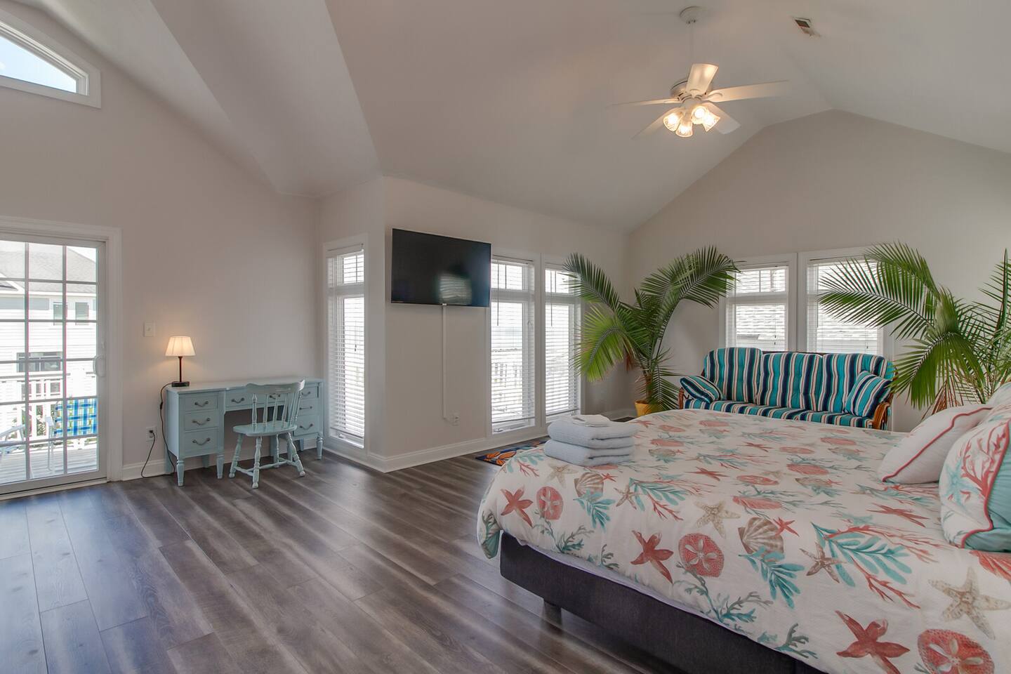 Experience the perfect blend of coastal luxury and family comfort at this spacious 5-bedroom, 4-bath beachside retreat. Featuring 4 king bedrooms and a bunk room with 2 twin sets, it’s ideal for large families or multi-generational groups. Enjoy a fully stocked kitchen, fast Wi-Fi, a washer and dryer, and a large balcony for soaking in the views. Located just steps from the sand, you’ll have easy access to the beach! Whether for a weekend or an extended stay, this home has it all!