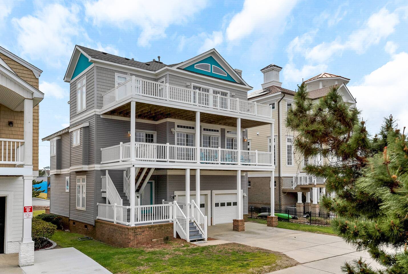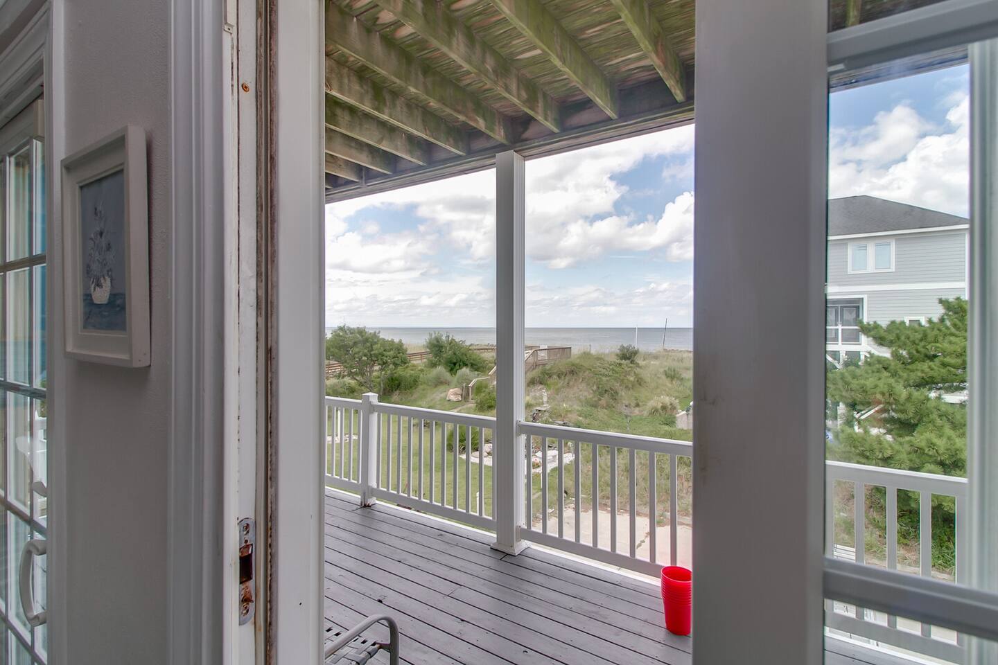 AMENITIES: *20 Second Walk to the Beach! *Stunning beach views from multiple decks and windows *500 Mbps high-speed internet *55" Smart TV in living room and 50" Smart TV in each KING bed bedroom (4 rooms) *Washer and dryer for your use *Free Parking driveway and garage space ***Hulu, Netflix, Disney+, ESPN+ on all Smart TVs!*** *Kitchen stocked with plenty of silverware, plates, cups, pots pans and knives *Coffee pot AND Keurig *Bath towels and sheets provided *Beach towels and beach chairs provided *Dog friendly (extra fees apply, please read house rules for more information regarding pets) ROOMS: Master: 3rd floor, HUGE, king bed, sleeps 2, private bath, private deck 2nd Bed: 3rd floor, king bed, sleeps 2, shared bath on 3rd floor 3rd Bed: 2nd floor, king bed, sleeps 2, shared bath on 2nd floor 4th Bed: 1st floor, king bed, sleeps 2, shared bath on 1st floor 5th Bed: 1st floor, 4 twins (2 sets of bunk beds), sleeps 4, shared bath on 1st floor. Bottom bunks: For children or adults, weight limit 200lbs Top bunks: Children only please, weight limit 160lbs Located just one house back from the beach, this location provides excellent beach access while also conserving a bit of privacy by not being right on the beach. There is one house between this property and the beach, but the rest of the land is empty lots. I chose this location specifically because OV August provides spectacular Ocean Views without making you feel like everyone on the beach is staring into your home. The perfect spot! BEACH DOG RULES: Dogs are allowed on the beach on-leash during the offseason. Through the summer, specifically the Saturday before Memorial Day through Labor Day, dogs are not allowed on the beach between the hours of 10am - 6pm. Permit Number: ZP24-00875