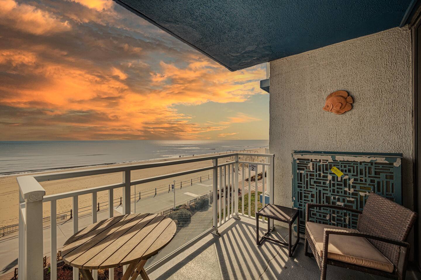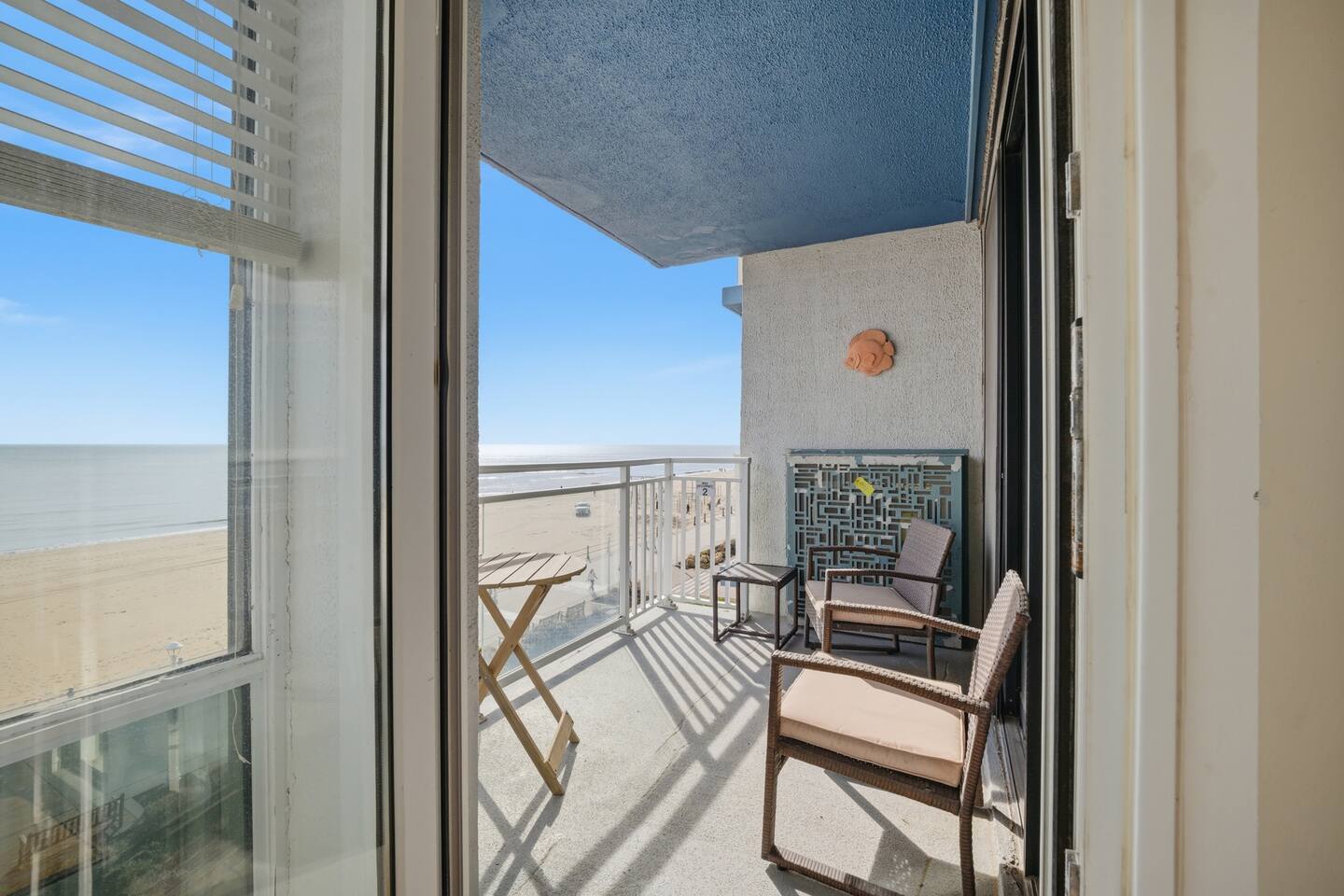 🌊 Oceanfront condo with direct beach views 🌅 Private balcony perfect for sunrise & sunset 🛋️ Bright living room with wall-to-wall windows 🛏️ 2-bedroom layout ideal for small groups or families 🍽️ Full kitchen for easy meals at home 🚿 2 full bathrooms for added comfort 📶 Wi-Fi available for work or streaming 🚶♂️ Steps from the beach and oceanfront area 🚗 Easy access parking at the building 🏖️ Perfect for relaxing beach getaways